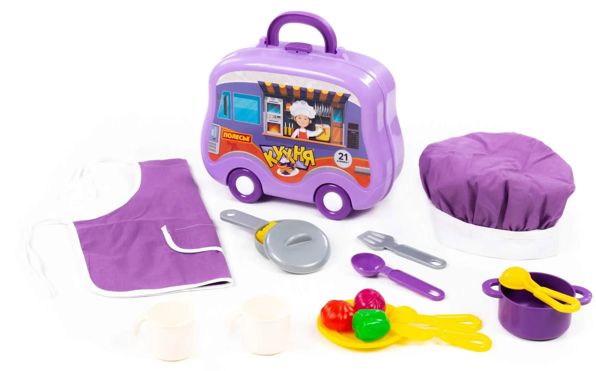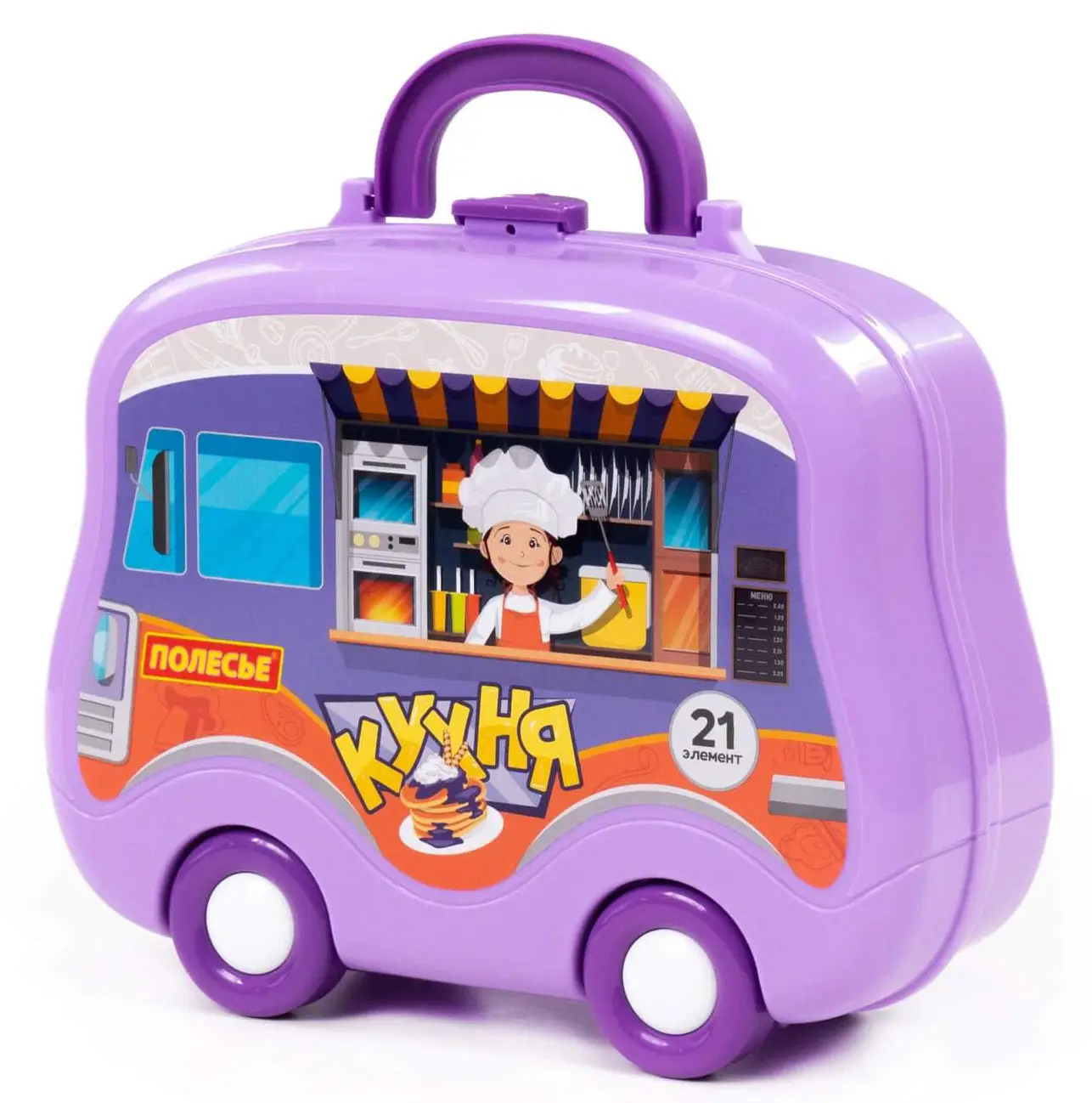 С ярким набором детской посуды от компании Полесье у ребёнка появится возможность придумать ещё больше интересных сюжетов для весёлых игр одному или в дружной компании. Все элементы набора помещены в оригинальный чемоданчик на колёсах.