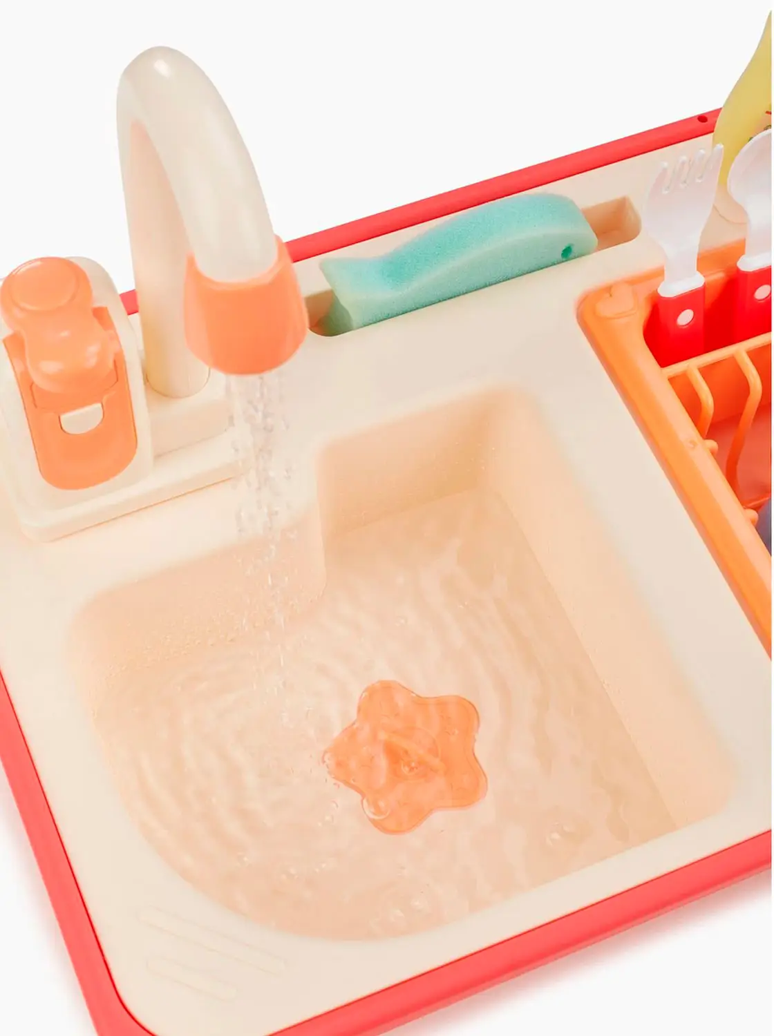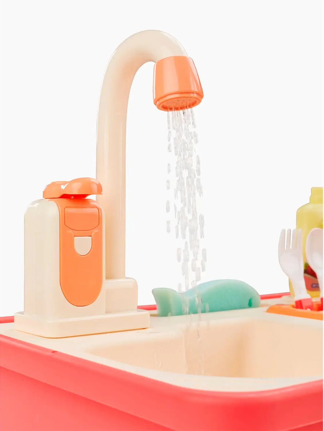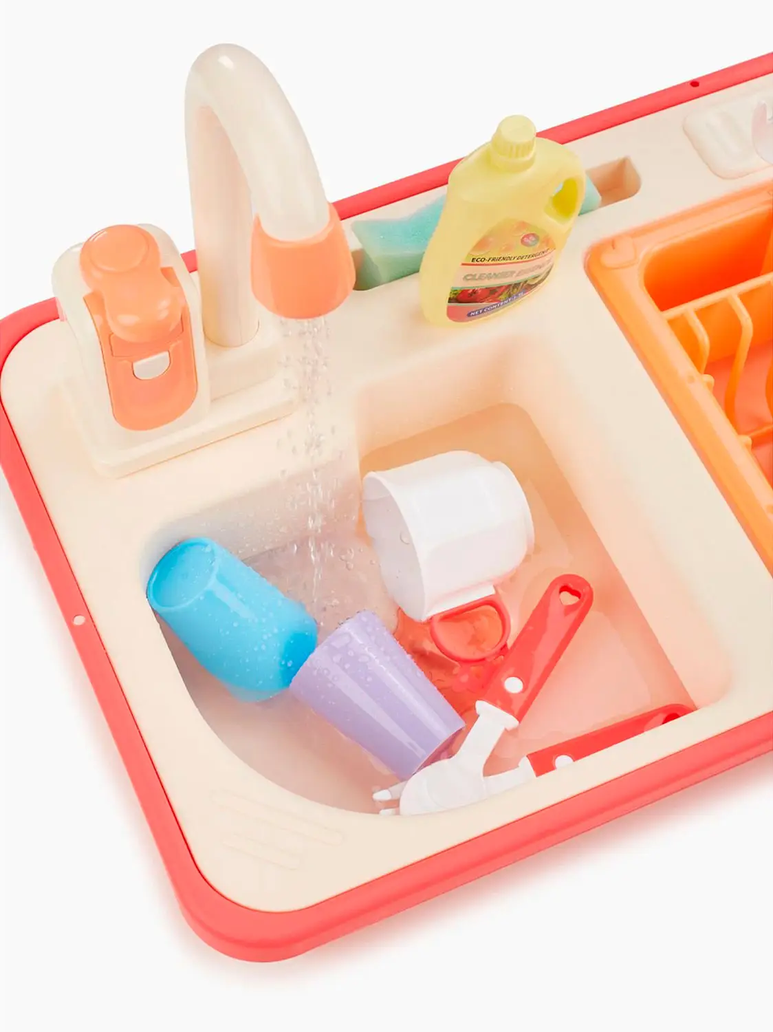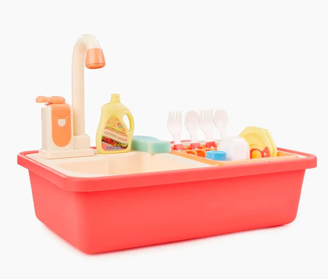 Игрушечная мойка даст возможность плескаться в воде, представлять себя взрослым и не терять интерес к домашним делам. Вода в игрушке циркулирует. Наполните мойку водой, включите кран – вода начнёт вытекать через него обратно в мойку, а затем снова попадёт в кран. Играть можно бесконечно. Приятные эмоции обеспечены.