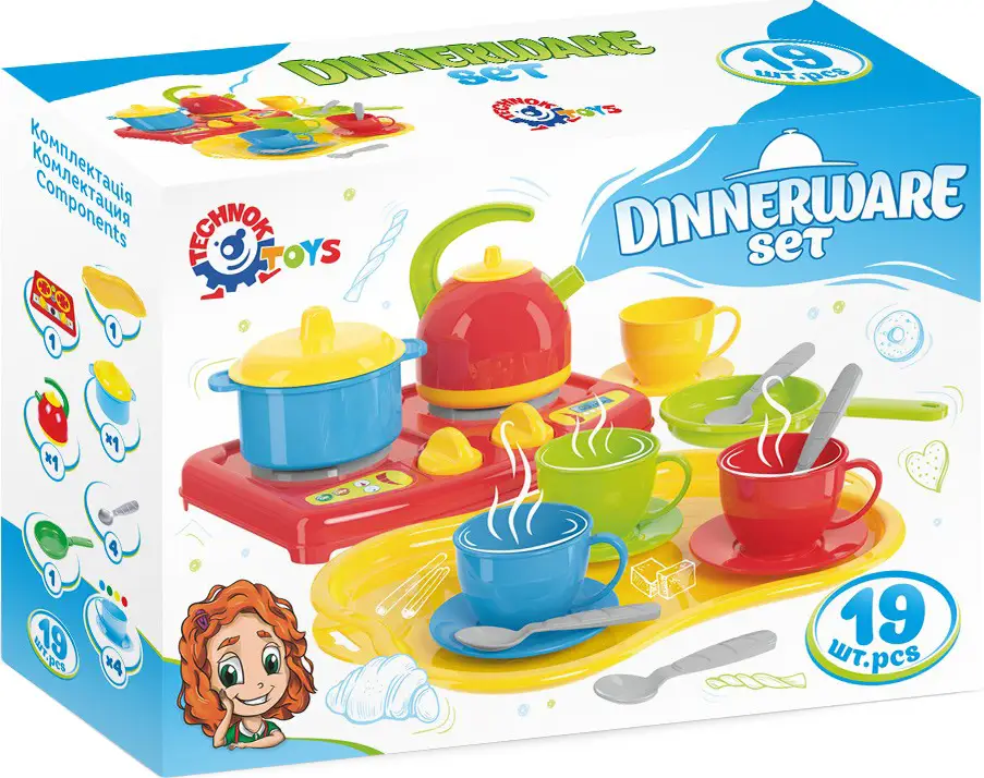 Посуда ТехноК Маринка 19 элементов с плитой в коробке (5шт), 33х11х24см