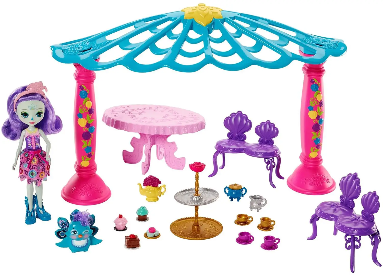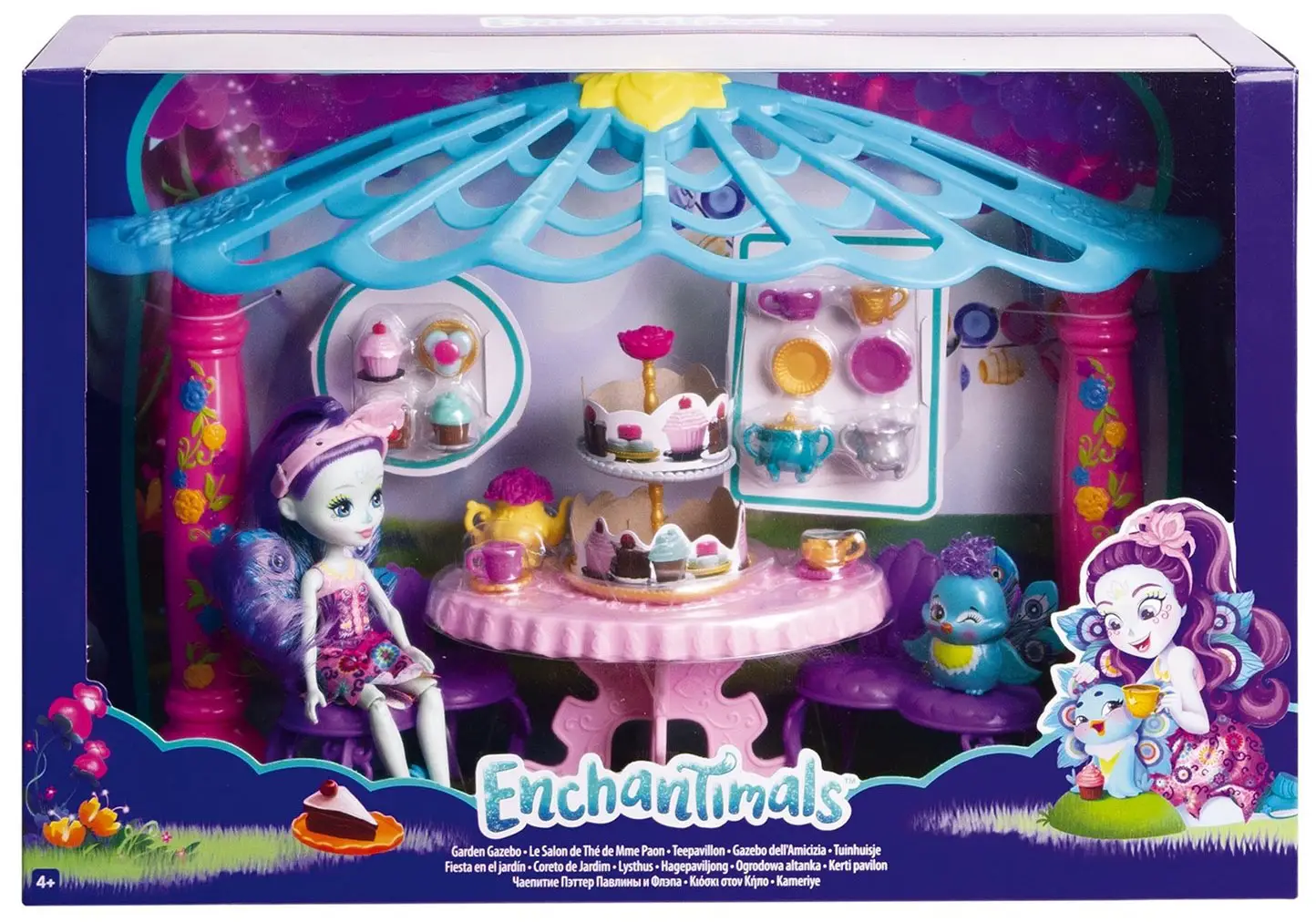 Кукла Пэттер Павлинаи павлин Флэп из линейки Enchantimals хотят устроить чаепитие в большой беседке.