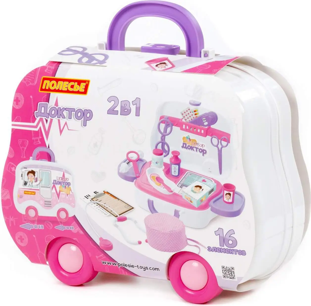 Игровой набор от Полесье способствует развитию фантазии и коммуникативным навыкам у дошкольников, знакомит с профессией врача, способствуют формированию абстрактного мышления.