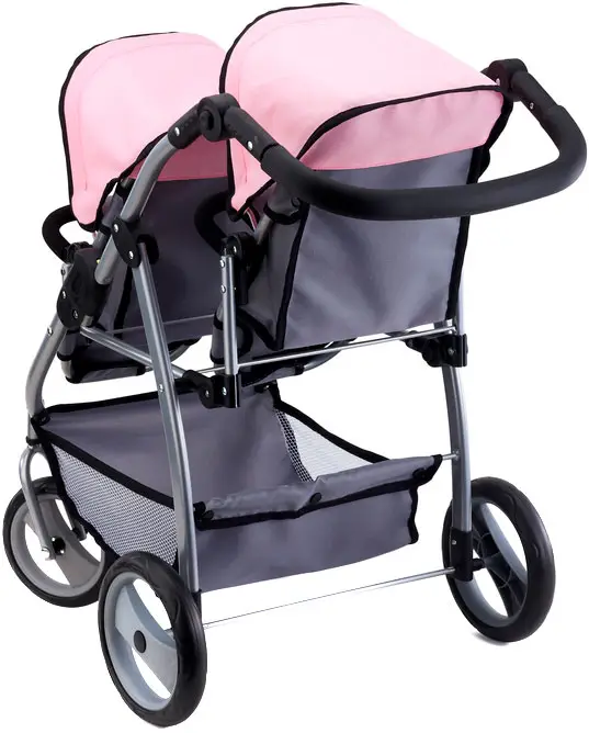 Коляска для двух кукол Bayer Twin Tandem, серо-розовая 26508AA
