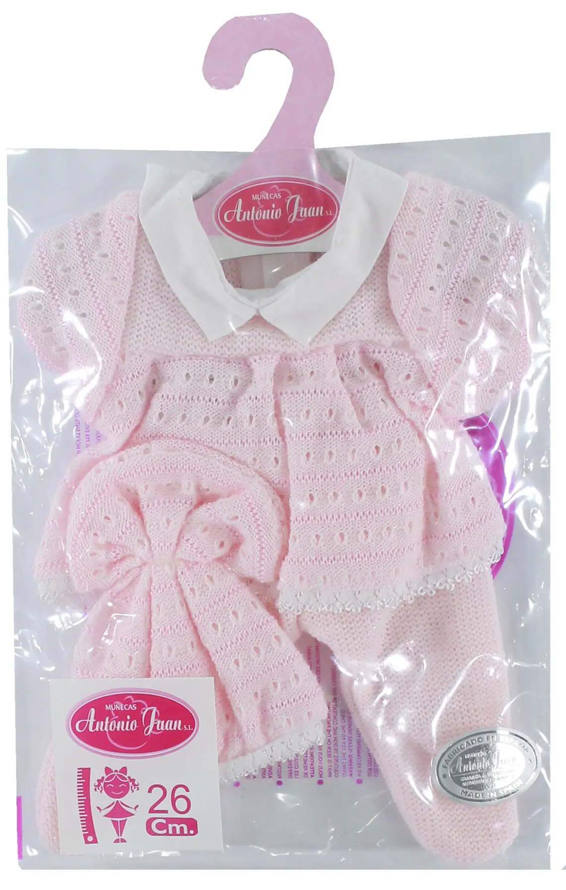 Нежный девичий комплект одежды для куклы 26 см из органического хлопка разработан испанскими дизайнерами специально для кукол Антонио Хуан.