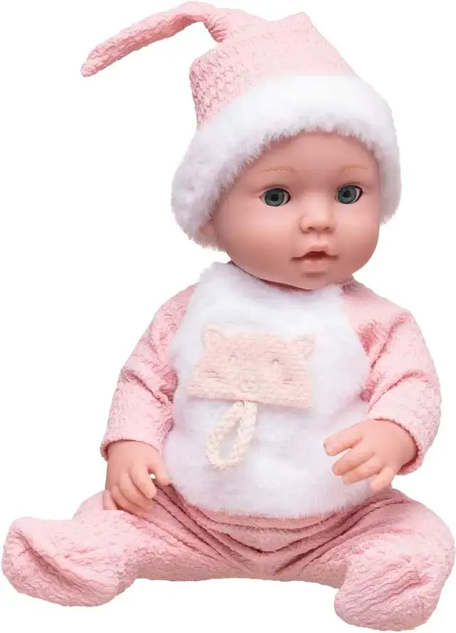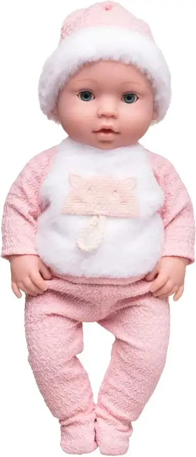 Пупс выглядит реалистично, у него подвижные руки, ноги, голова, выразительные глазки. Одежда выполнена из высококачественного текстиля, в спокойных тонах, с продуманными элементами декора. На пупсе одет костюмчик из приятного на ощупь жатого материала. На кофточке размещена белая меховая вставка с аппликацией в форме головы кошечки, на голове – шапочка-колпак с меховой оборкой. Одежду можно снять, пупса искупать. Игровые предметы, дополняющие набор, сделают игру с ним еще более интересной и увлекательной, помогут разыграть различные сценки. Игрушка упакована в элегантную коробку, может стать отличным подарком для любой девочки.