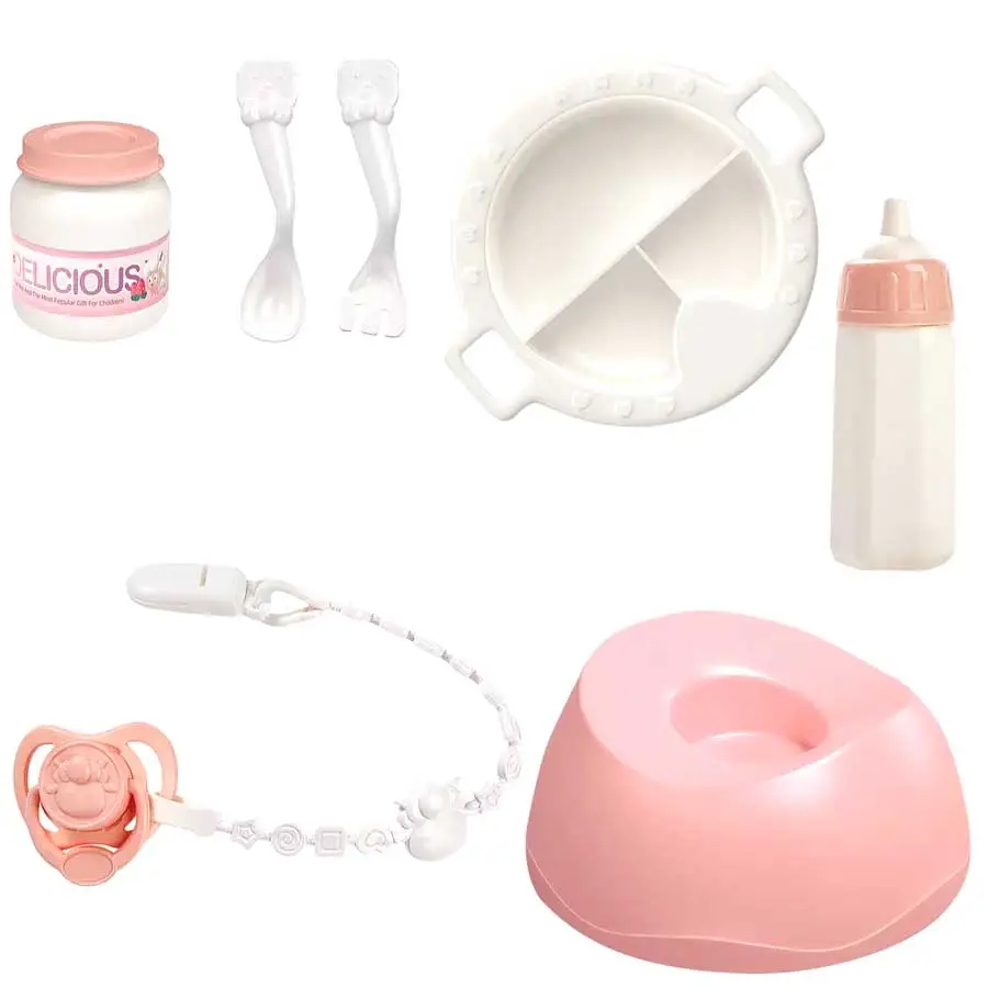 - комплектность – кукла-пупс, горшок, бутылочка для кормления, баночка с крышкой, соска-пустышка с держателем, тарелка, ложка, вилка;