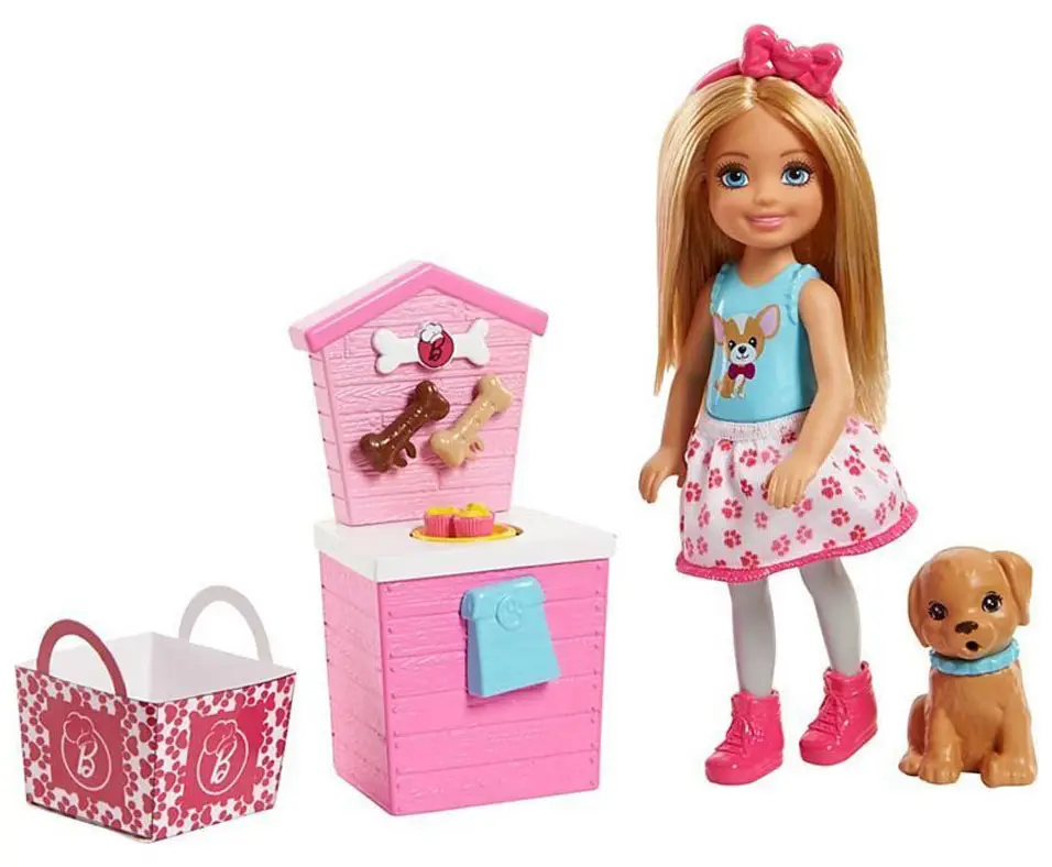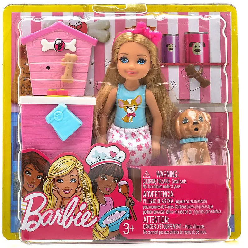 Замечательная серия «Челси и щенок» позволит маленькой принцессе вместе с самой младшей сестренкой Барби открыть собственный магазин аксессуаров для щенков.