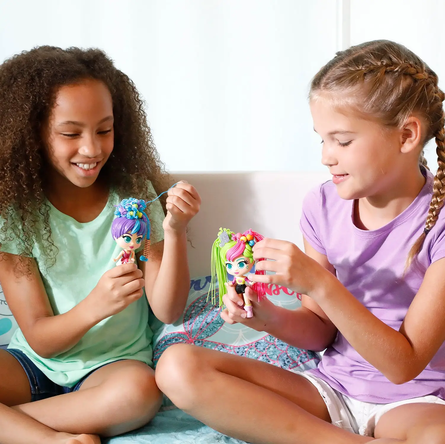 В наборе есть всё необходимое для того, чтобы завивать локоны. Изначально куколка и щенок имеют прямые пряди волос. Потяните за прядь, чтобы...