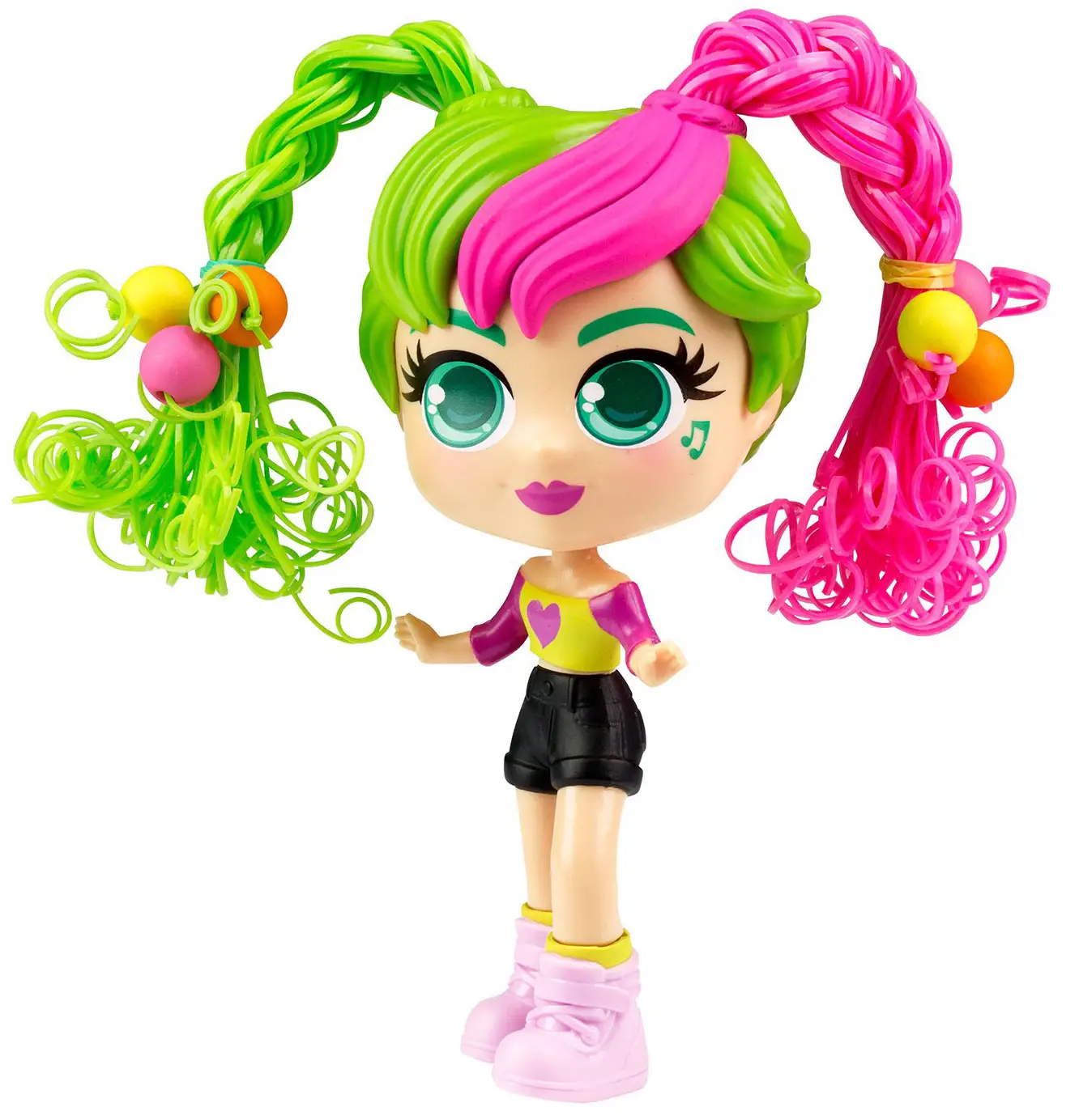 Очаровательная куколка танцовщица Келли с розово-зелеными волосами в красивом платье готова сделать новые причёски.