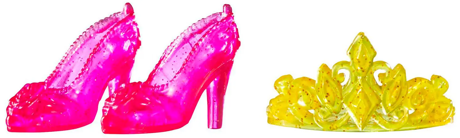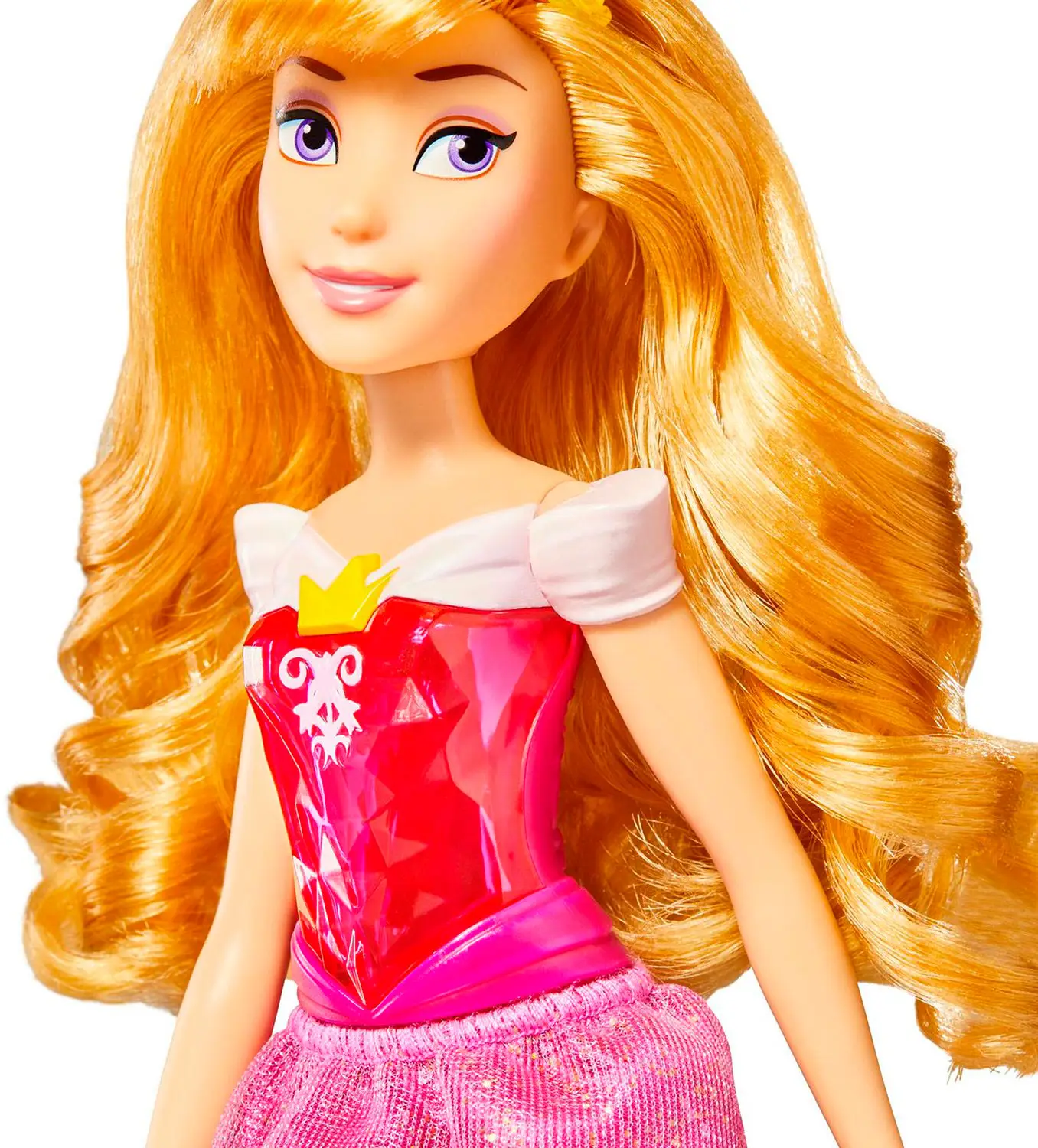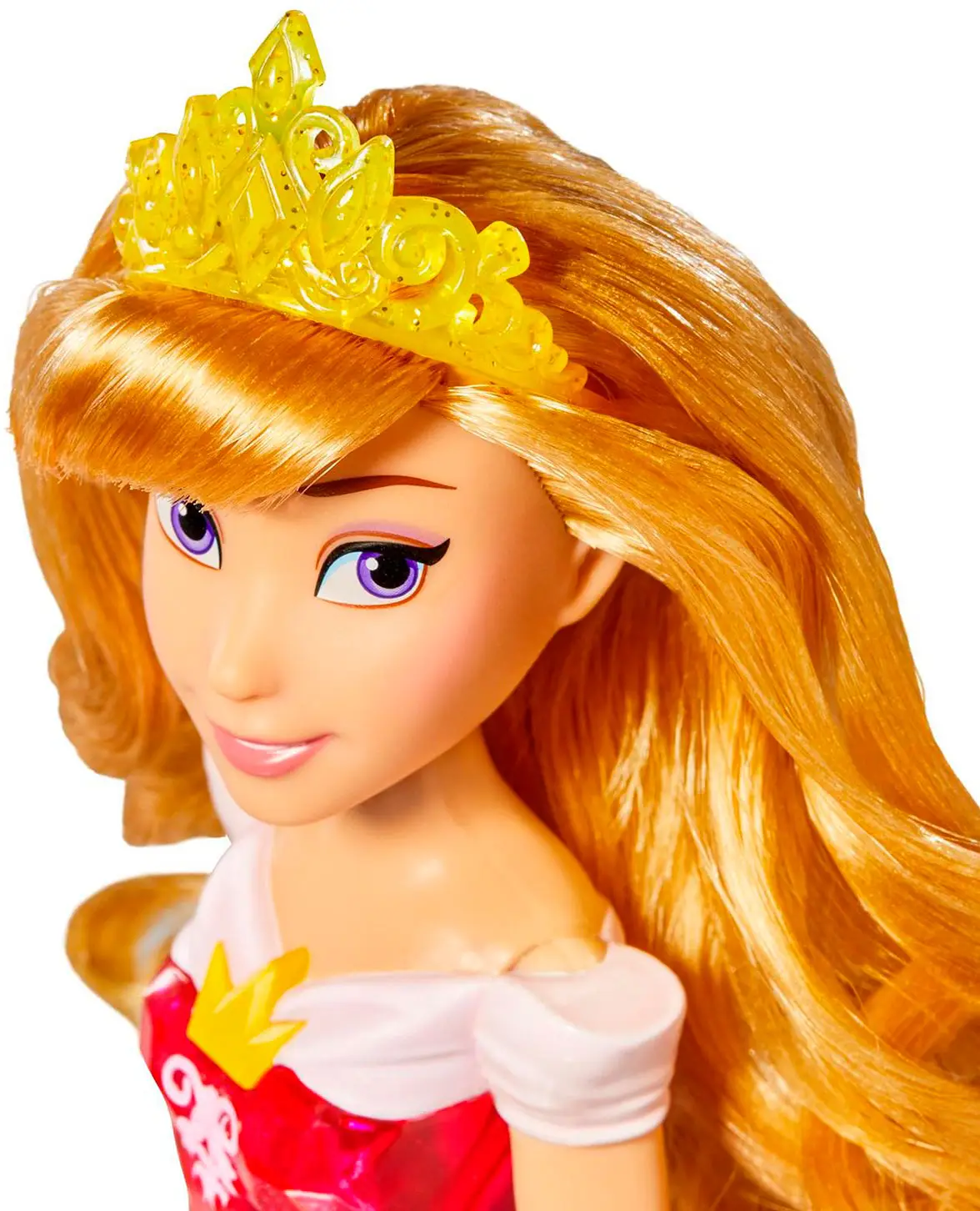 - кукла прекрасной принцессы Авроры в комплекте с юбкой, тиарой и хрустальными туфельками ее фирменного розового цвета;