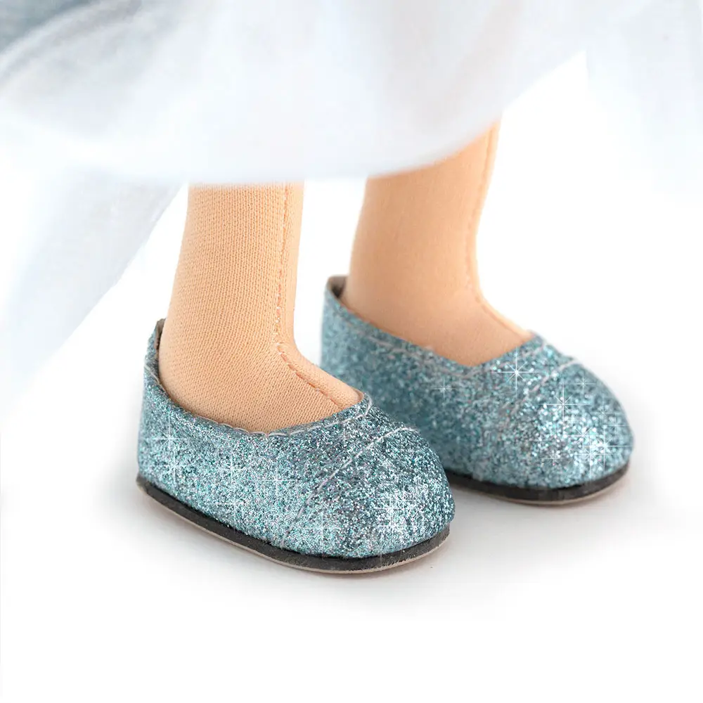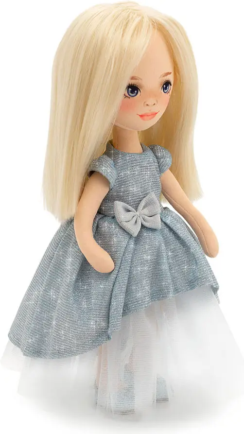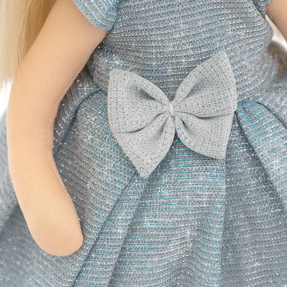 Кукла от компании Orange Toys выполнена из высококачественных материалов. Миа одета в нежно голубое платье с искристым люрексом, мерцающим как звёздочки на небосводе. Платье состоит из воздушного низа юбки, милого бантика и рукава-фонарикии.