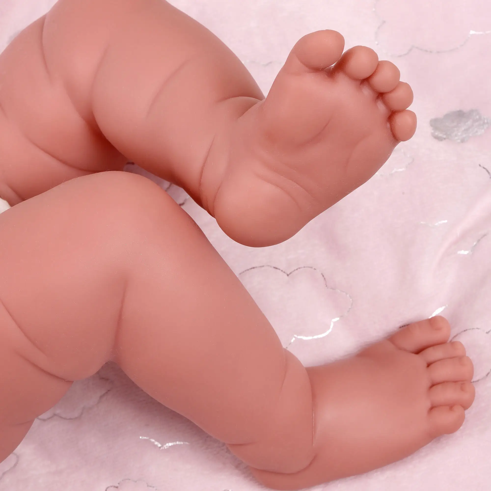 Тело куклы Паулы от Antonio Juan мягконабивное, а голова, ручки и ножки изготовлены из гипоаллергенного винила с бархатистой поверхностью. У куклы серые глаза с длинными ресницами, которые искусно приклеены вручную.