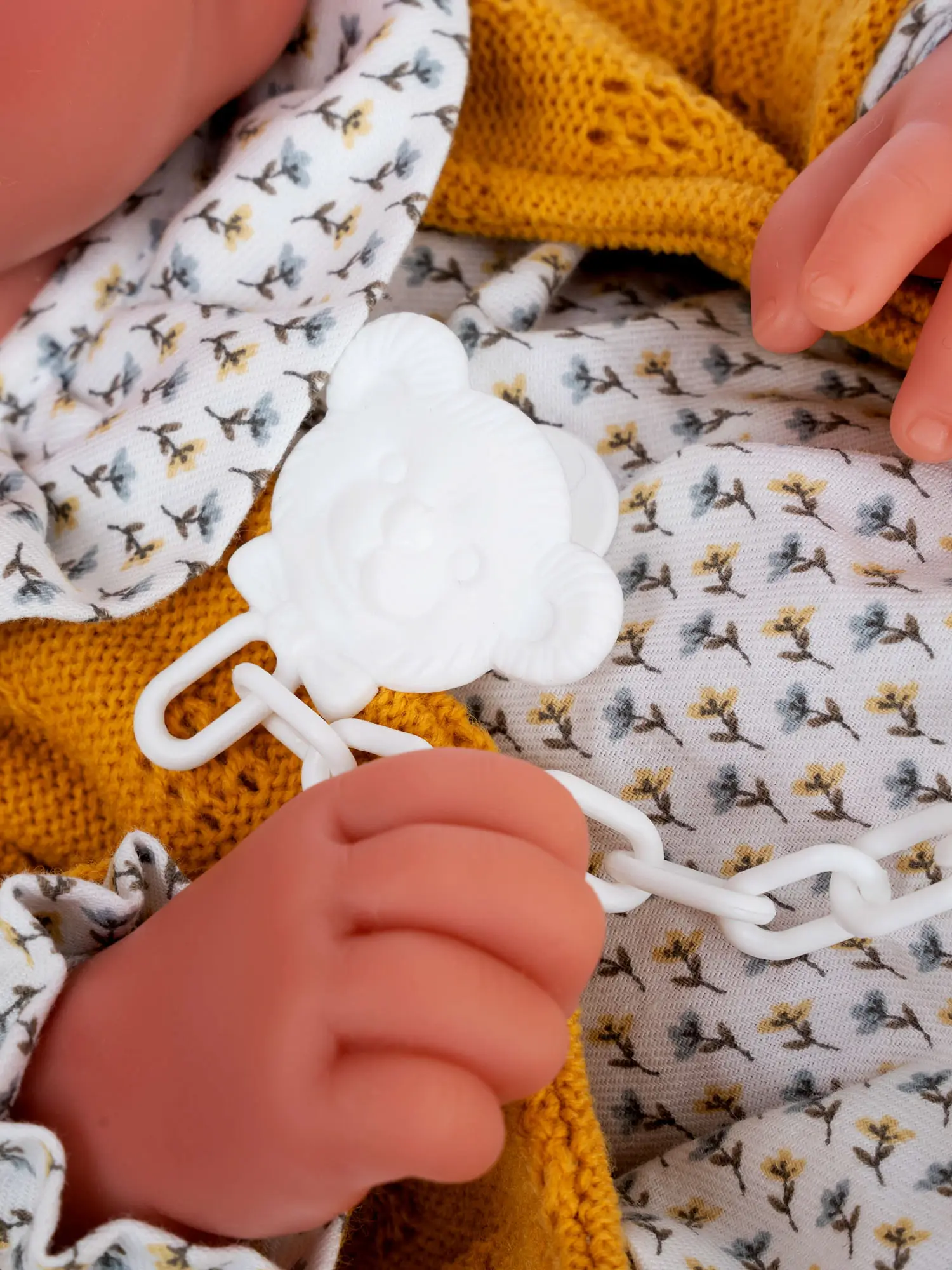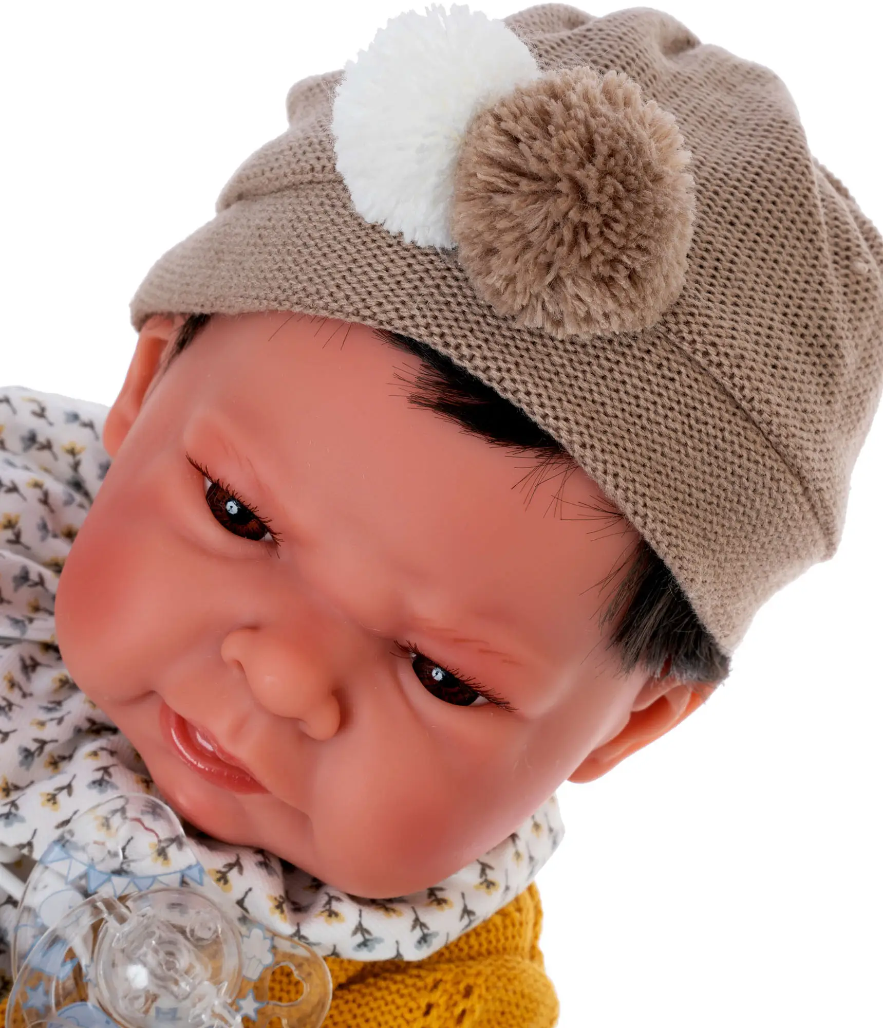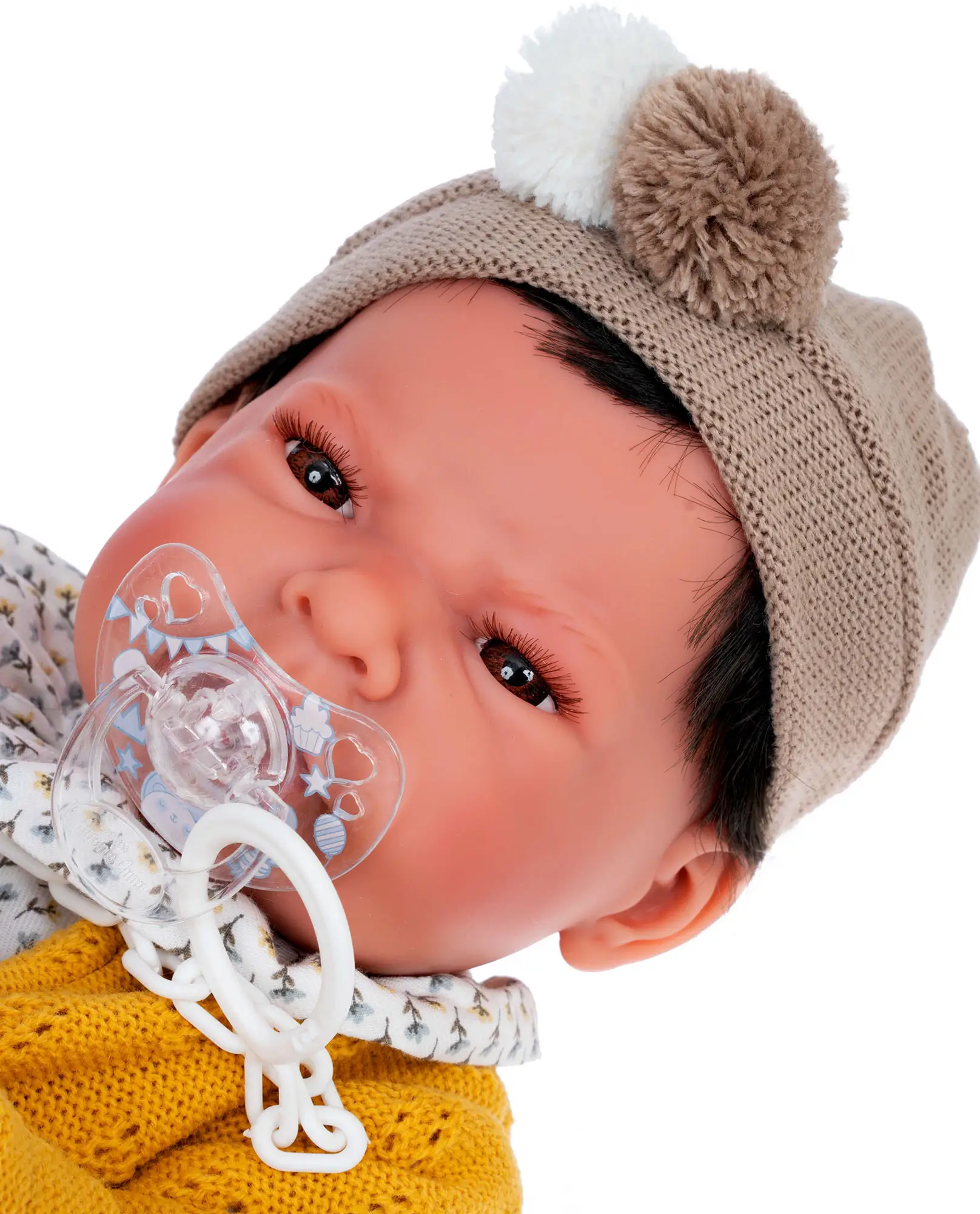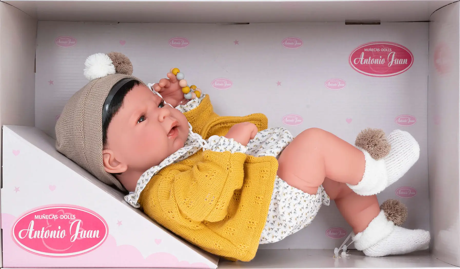 Кукла пупс Элис от Antonio Juan изготовлен из гипоаллергенного винила с бархатистой поверхностью. У куклы карие глаза с длинными ресницами, которые искусно приклеены. Волосы аккуратно прорисованы вручную.