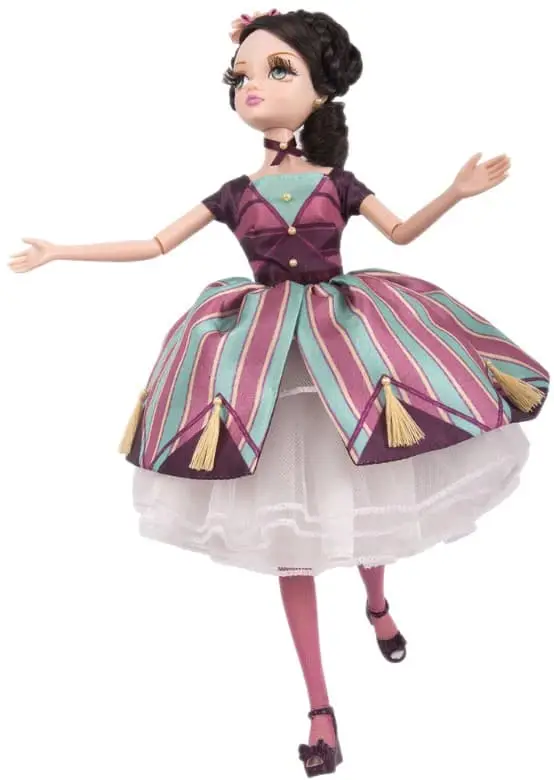 Одета в пышное платье, на ногах колготки, в волосах аксессуарх, на шее чокер, обута в туфельки. Волосы куклы можно расчесывать и укладывать ...