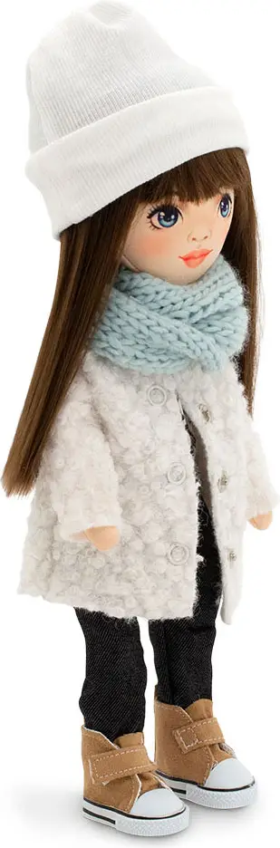 Кукла от компании Orange Toys выполнена из высококачественных материалов. Софм одета в леопардовый топ с тёмными джинсами скинни, молочную шубку и мягкий голубой шарф.