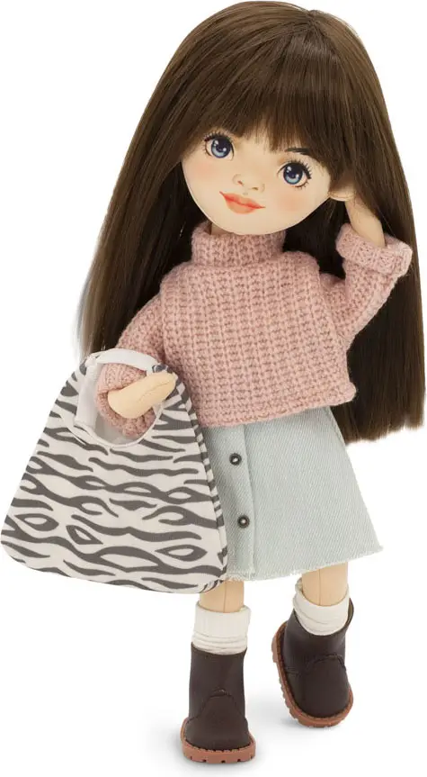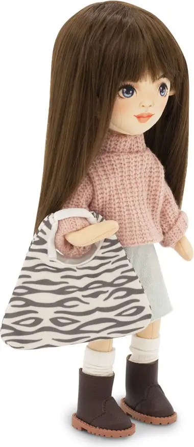 Кукла от компании Orange Toys выполнена из высококачественных материалов. Софи одета в джинсовую юбку и модный оверсайз свитер цвета пыльной розы. Удлинённые гетры и стильная сумка-шоппер в зебровом принте отлично дополняют образ.