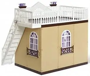 Чтобы у любимой куколки вашей дочки появился свой собственный загородный дом, подарите малышке эту реалистичную игровую конструкцию. Она напоминает красивую виллу с открытой террасой, на которой можно разместить игрушки. А гостиную при желании можно дополнить мебелью, чтобы сюжетная игра стала намного интереснее и разнообразнее.