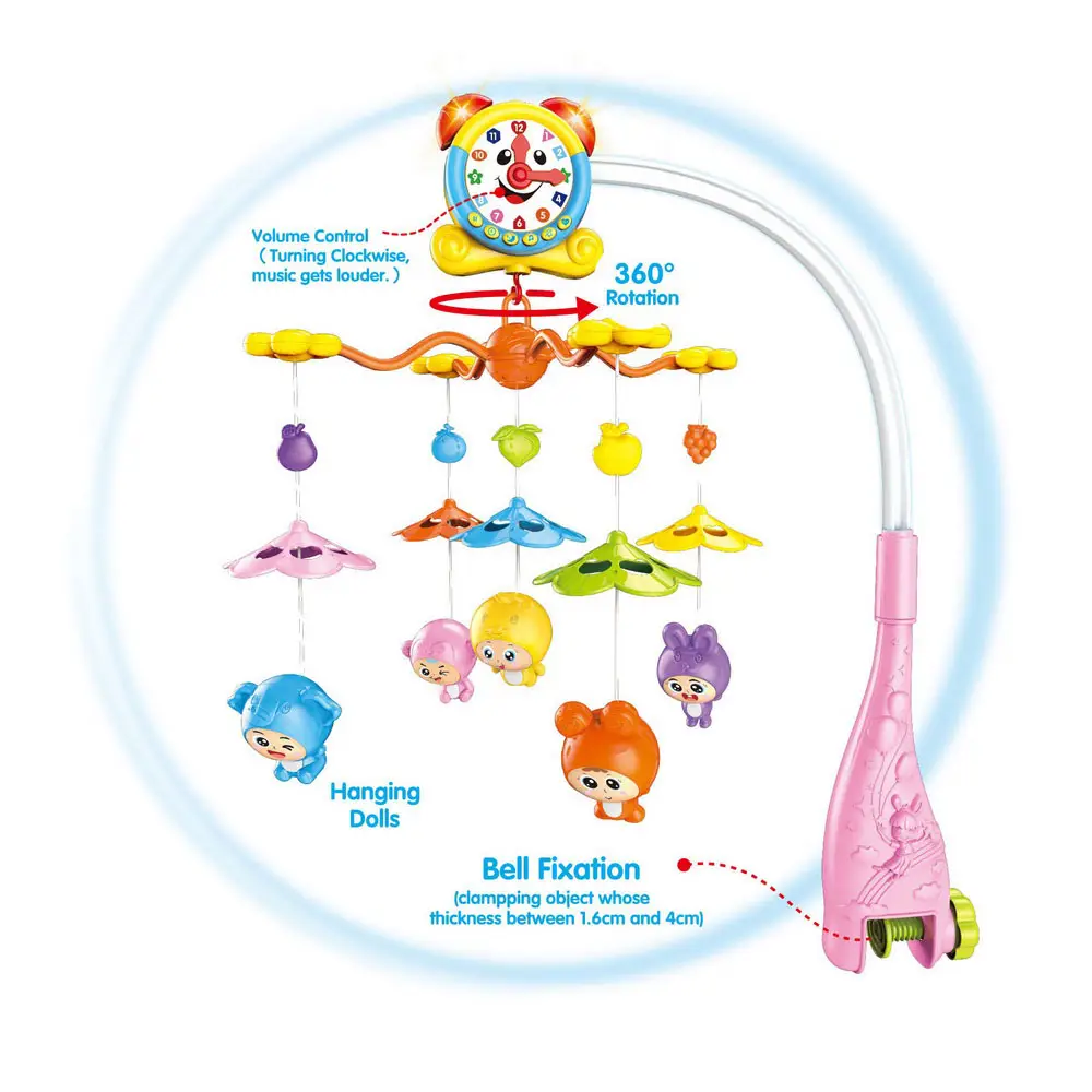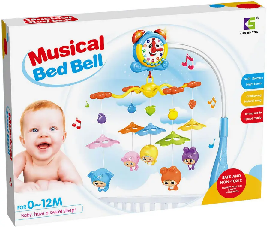 Мобиль отлично привлекает внимание карапуза, тем самым развивает фиксирование взгляда на движущихся предметах, а встроенная музыкальная шкатулка с приятной мелодией прекрасно успокаивает. Уровень громкости можно регулировать. Также есть возможность установить таймер. Мобиль прикрепляется на бортик кроватки при помощи простого механизма. На нем подвешены 5 игрушек, изображающие разных веселых персонажей. Мелодичная песенка и завораживающее движения игрушек-подвесок позабавят малыша. Ребенок будет ловить яркие игрушки, развивая двигательную активность и внимание.