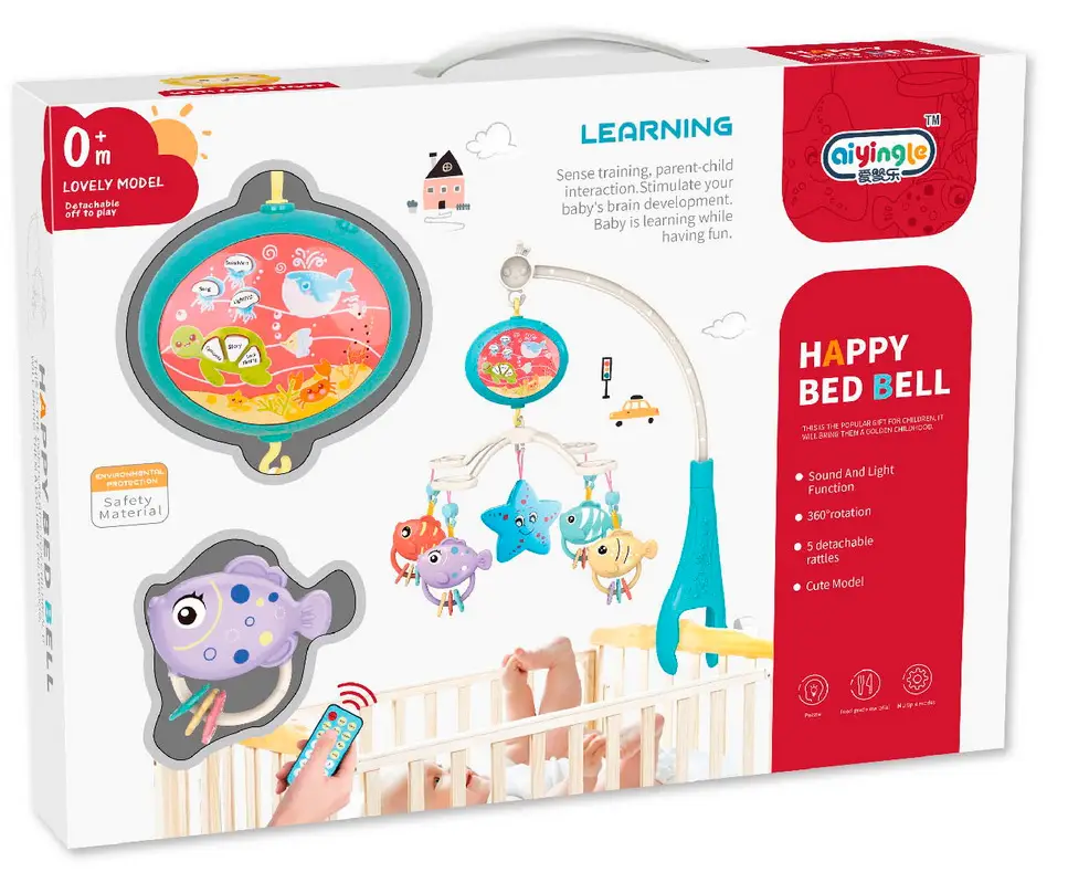 Мобиль отлично привлекает внимание карапуза, тем самым развивает фиксирование взгляда на движущихся предметах, а встроенная музыкальная шкатулка с приятной мелодией прекрасно успокаивает.