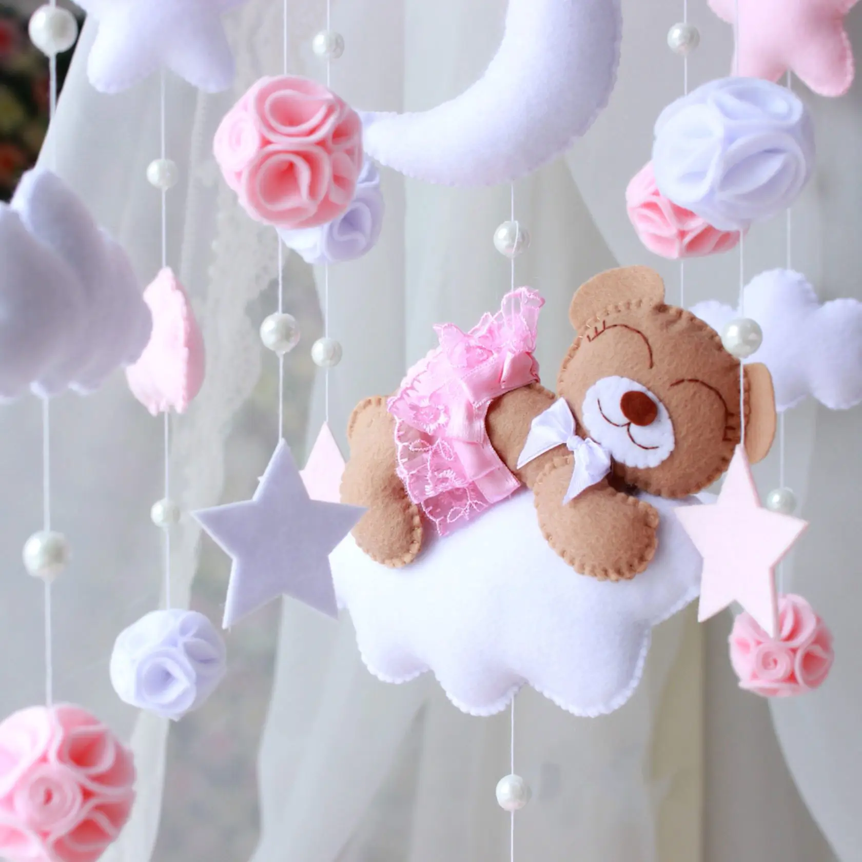 Felt Dreams Мобиль на кроватку "Сонный мишка", розовый