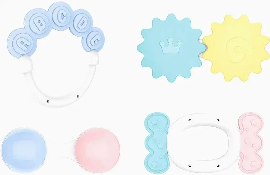 Прорезыватель Huanger – это одна из первых игрушек в жизни любого малыша. В тот период, когда у ребёнка ещё не вылез ни один зуб, но постоянно чешутся десны, педиатры рекомендуют дать ему прорезыватель. Именно эта игрушка поможет ребёнку облегчить боль, снять зуд и справиться с этим неприятным и непростым для малыша процессом. В упаковке 4 разных Прорезывателя-Игрушки-Погремушки шириной от 45 мм до 95 мм и длиной от 95 мм до 125 мм. Дезинфекция производится в кипящей воде в течении 2-3 минут.