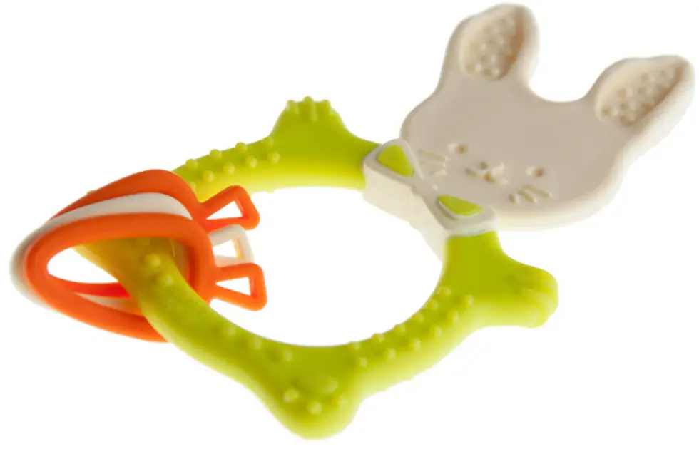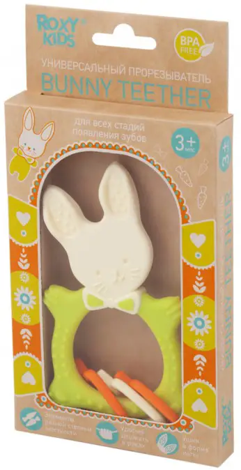 Прорезыватель сделан из безопасных гипоаллергенных материалов – термоэластопласта и полипропилена, так что ребёнок может грызть его целыми днями. А учитывая, что грызунок представляет из себя милого кролика, он станет для вашего карапуза еще и отличной игрушкой!
