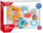 Яркий развивающий набор погремушек-прорезывателей выполнен из безопасных материалов.