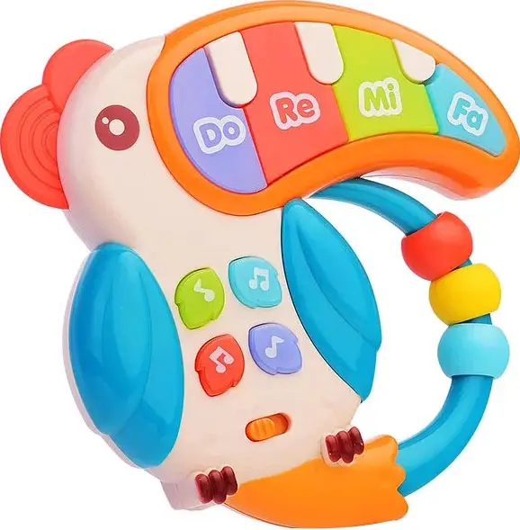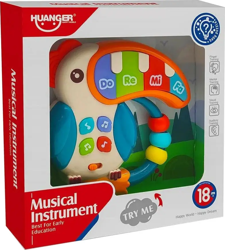 Развивающая игрушка от Huanger представляет собой детское музыкальное пианино, выполненное в виде попугая.
