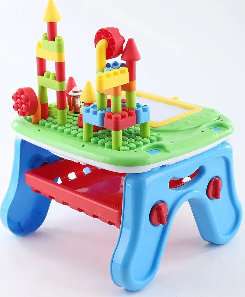 Развивающий центр "Строитель" выполнен в виде игрового столика, который имеет двустороннюю игровую панель.