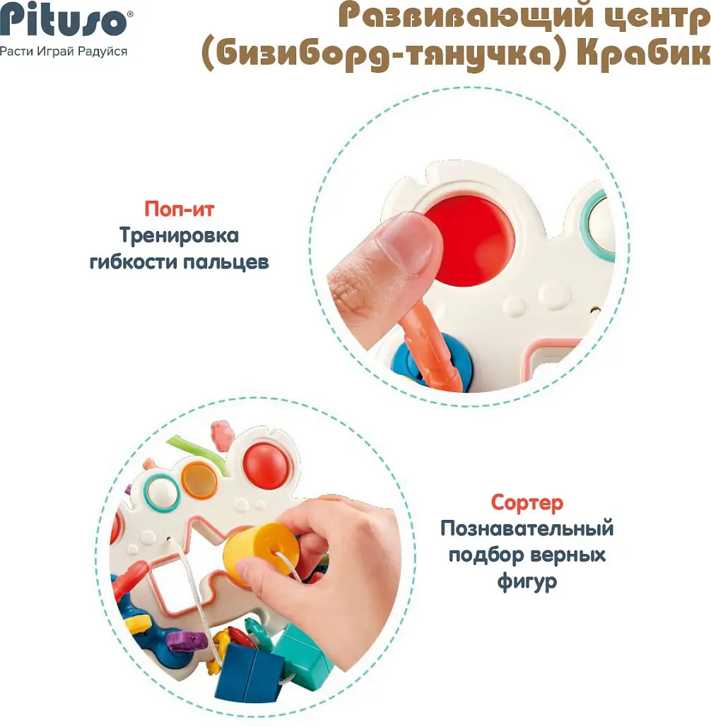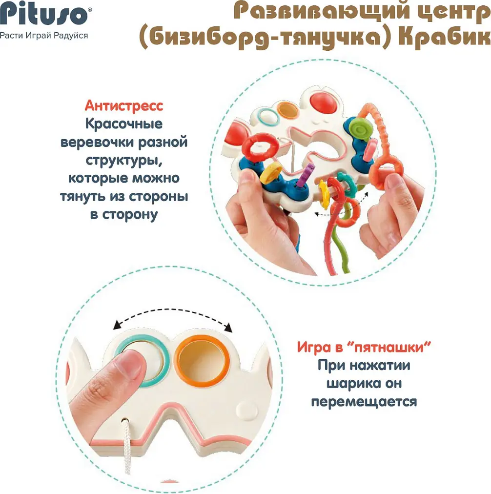 Развивающий центр Pituso бизиборд-тянучка Крабик, 12x15,5x26 см