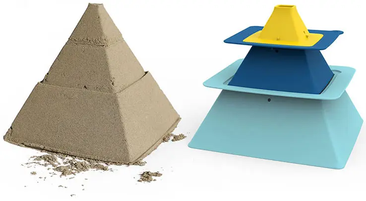 Когда в песочнице среди небольших куличиков и построек появится многоуровневая пирамидка, то все дети с восхищением будут смотреть на вашего маленького архитектора. Но он то знает секрет, что главной изюминкой сооружения являются формочки, помогающие возводить 3-уровневую постройку из песка.