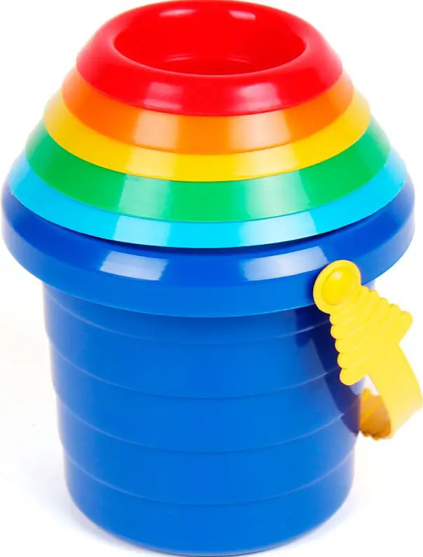Пирамидка Технок Сомбреро состоит из 6 ярких элементов, в которые можно сложить все элементы. Малыш составляет высокую пирамидку с ведёрком в основе. С помощью этих формочек можно делать различные фигурки в песке.