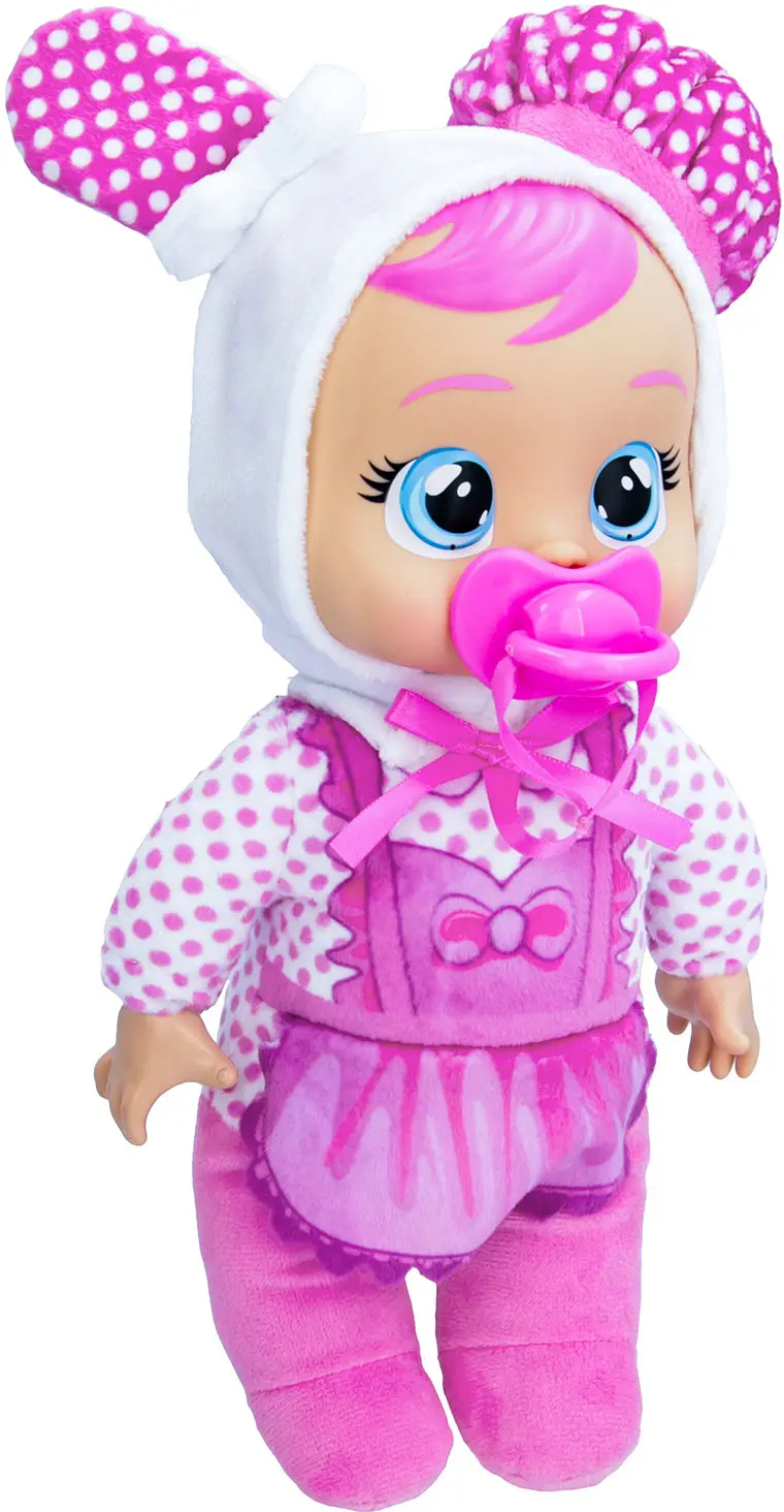 Но не стоит расстраивать обворожительную малышку! Если нажать на ее голову, она начнет плакать настоящими слезами. Обними Кони и дай пустышку или расскажи ей веселую историю, и малышка снова станет счастливой!