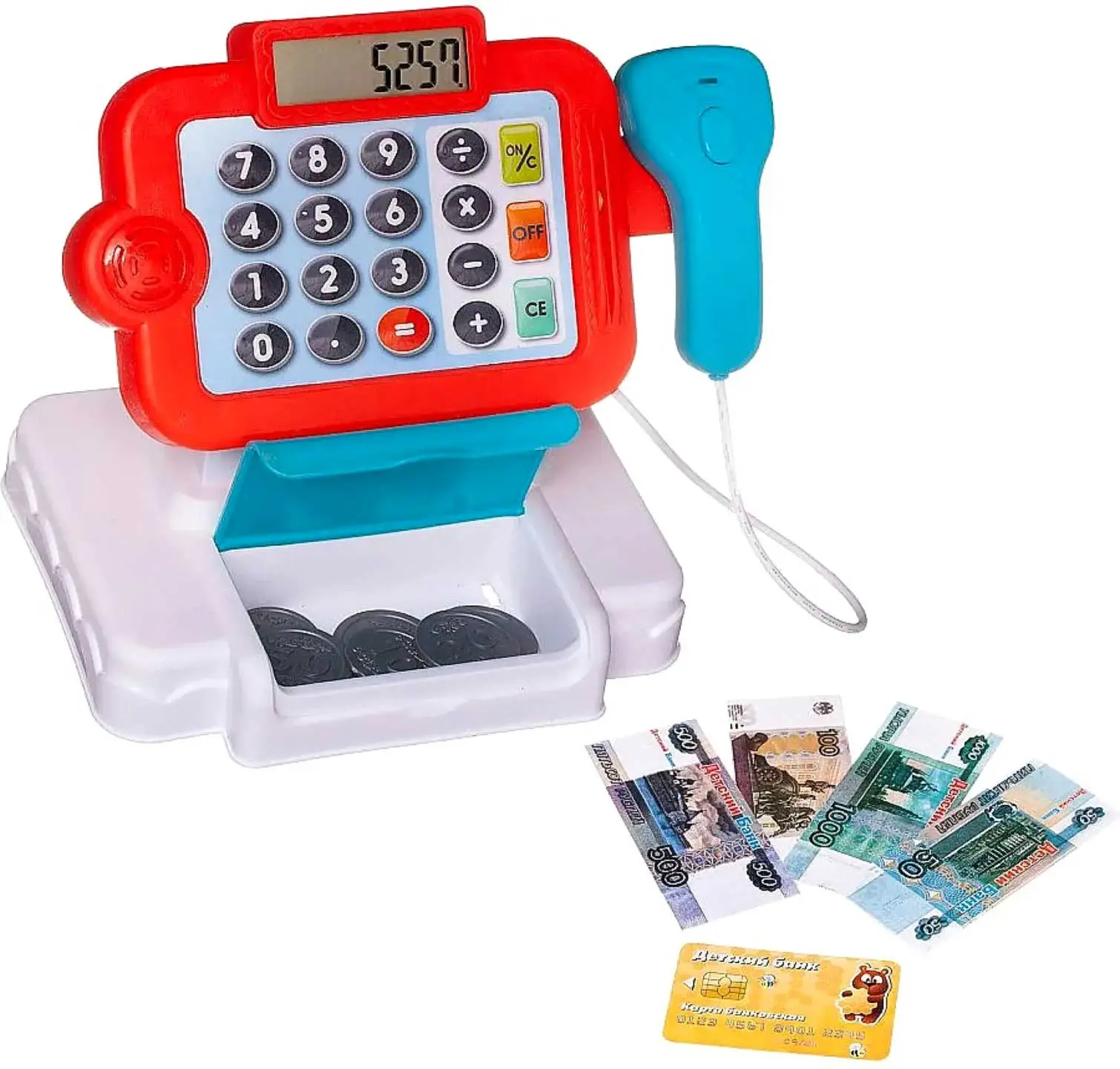 Игровой набор Junfa "Помогаю маме" – это увлекательная игра для развития социальных навыков и обучения основам финансовой грамотности. В комплект входит касса со звуковыми и световыми эффектами, банковская карта и ящик для хранения денег. Размер кассы — 24,5×20×14,5 см. В наборе также есть игрушечные деньги, что позволяет ребёнку почувствовать себя настоящим кассиром.