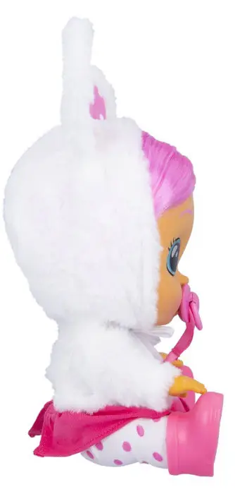 Модница Кони нуждается в твоей заботе! Она обожает, когда с ней играют, одевают, а ещё больше, когда обнимают. Но не стоит расстраивать обворожительную малышку! Она начнёт грустно всхлипывать и плакать настоящими слезами, если ты заберешь у неё пустышку. Нужно успокоить милую Кони! Обними и положи её на спинку или дай пустышку: и Модница Кони снова станет счастливой! Смеяться и плакать – это не все, что она умеет: Кони будет реагировать различными звуками на твои действия. Кони обожает петь, и у неё это отлично получается! Дома она устраивает репетиции на своей импровизированной сцене. Ей нравится петь и для других, поэтому она часто устраивает концерты для своих подружек Край Бебис. У очаровательной Кони модный съёмный наряд кролика и стильная обувь. Она любит двигать ручками, ножками и головой. Поиграй с Кони и окунись в мир Волшебных Слез! Для работы игрушки требуются 2 щелочные батарейки ААА типа на 1,5В.