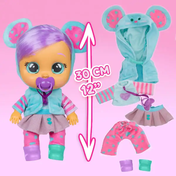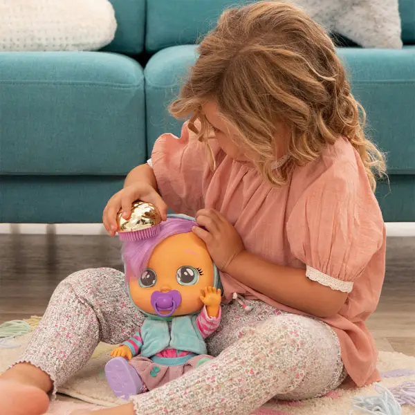 Модница Лала нуждается в твоей заботе! Она обожает, когда с ней играют, одевают, а ещё больше, когда обнимают. Но не стоит расстраивать обворожительную малышку! Она начнёт грустно всхлипывать и плакать настоящими слезами, если ты заберешь у неё пустышку. Нужно успокоить милую Лалу! Обними и положи её на спинку или дай пустышку: и Модница Лала снова станет счастливой! Смеяться и плакать – это не всё, что она умеет: Лала будет реагировать различными звуками на твои действия. Лала любит смешить своих подружек Край Бебис: она очарована миром магии и развлекает всех своими фокусами. Ей нравится, когда вокруг все счастливы. У очаровательной Лалы модный съемный наряд мышки и стильная обувь. Она любит двигать ручками, ножками и головой. Поиграй с Дейзи и окунись в мир Волшебных Слез!