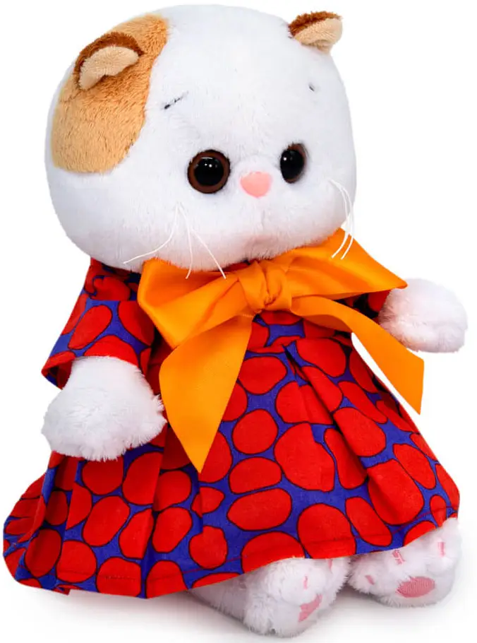 Малышка Ли-Ли в супермодном платье. Плотная, яркая ткань – алые круги на сочном ультрамариновом поле. Платье украшает шикарный бант из широкой атласной ленты цвета оранжевого пламени. Мягкая игрушка Ли–Ли станет отличным подарком, ведь игрушкам малыши доверяют самые заветные секреты. Благодаря приятному на ощупь материалу, у детей развиваются тактильные ощущения, а оригинальный пошив способствует творческому мировосприятию. Надёжные материалы и фурнитура позволяют выдержать множество стирок.