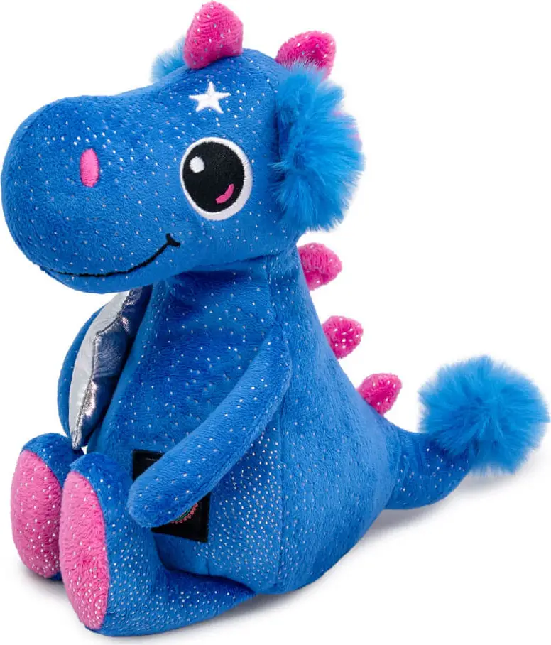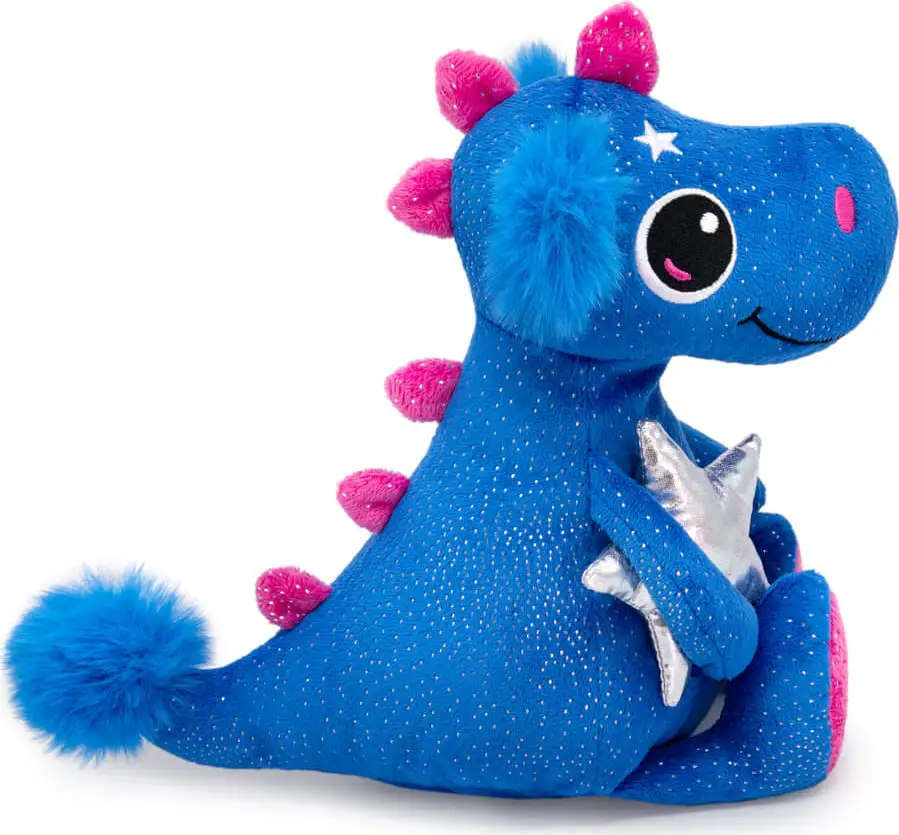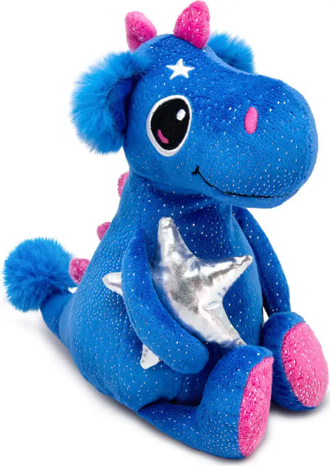 Сияющего синего цвета с серебристыми вкраплениями дракончик Ольсэн держит в лапках звезду из плотной серебряной ткани. Плюшевый дракон по ...