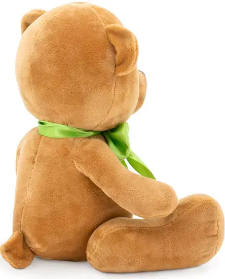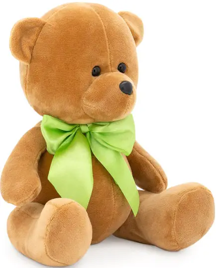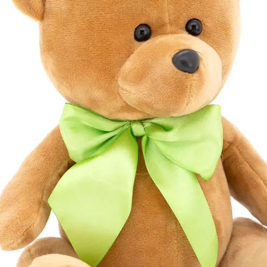 Познакомьтесь – это Медведь Топтыжкин. У него красивый кофейно-коричневый окрас и ярко-зелёный крупный бант, который выгодно подчеркивает внешность Мишки.