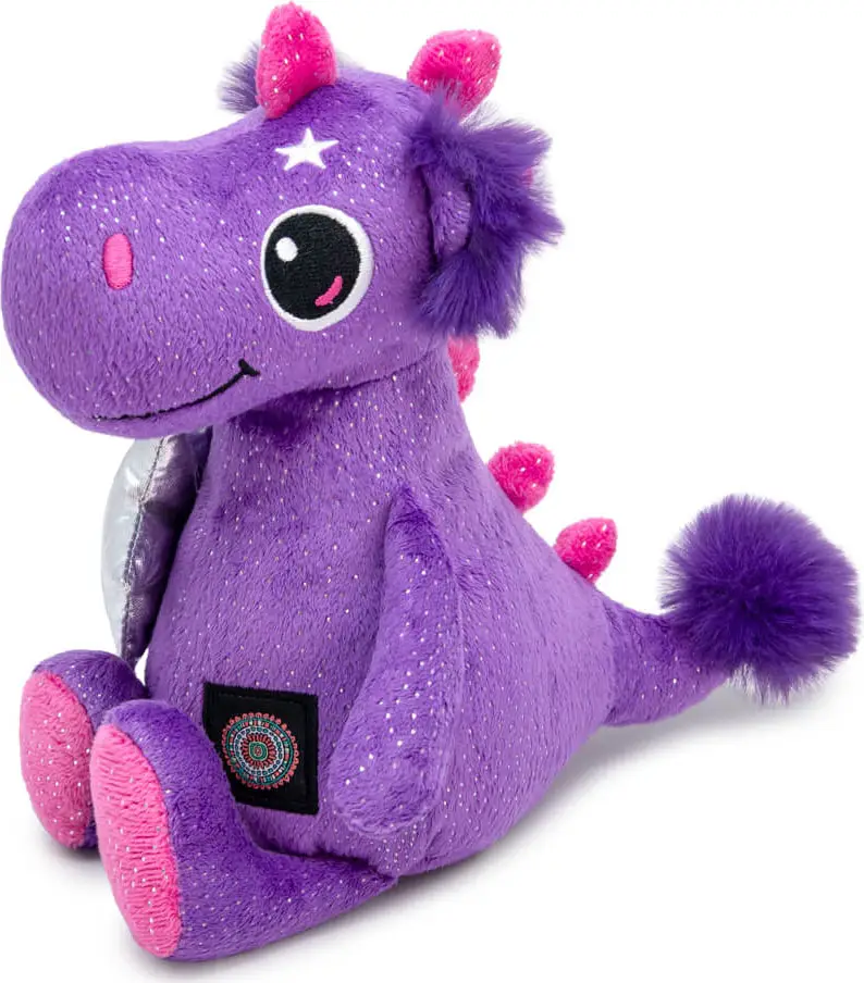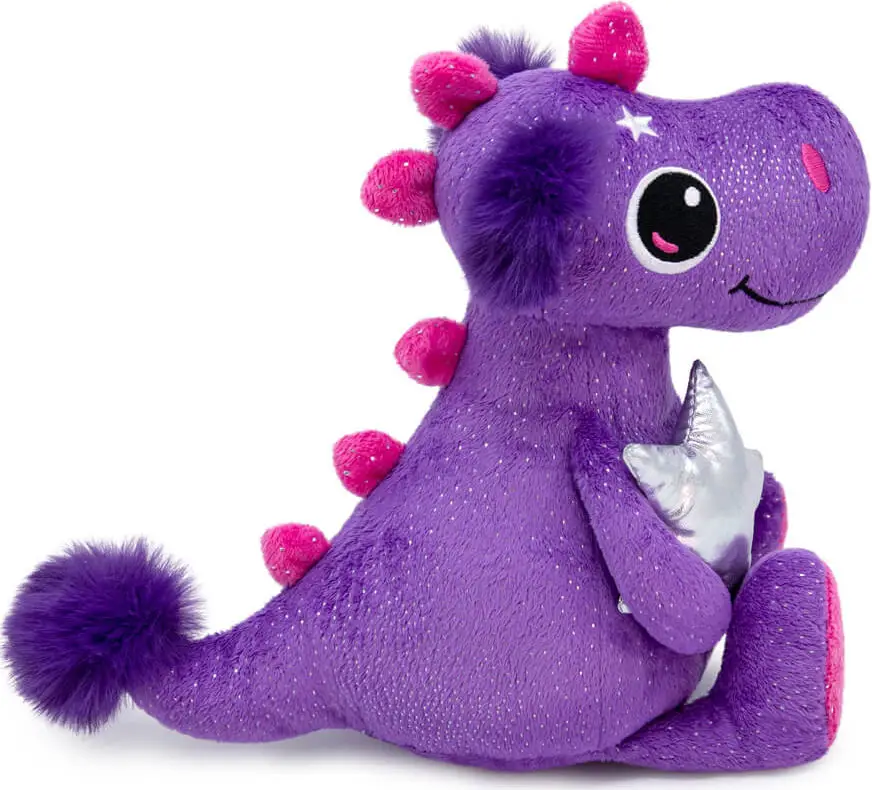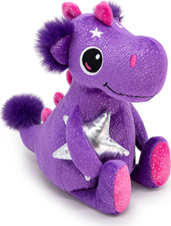 Гиацинтово-фиолетового цвета с серебристыми вкраплениями дракончик Ульге держит в лапках звезду из плотной серебряной ткани. Плюшевый дракон по имени Ульге подарит хорошее настроение и вызовет улыбку как взрослых, так и у детей.