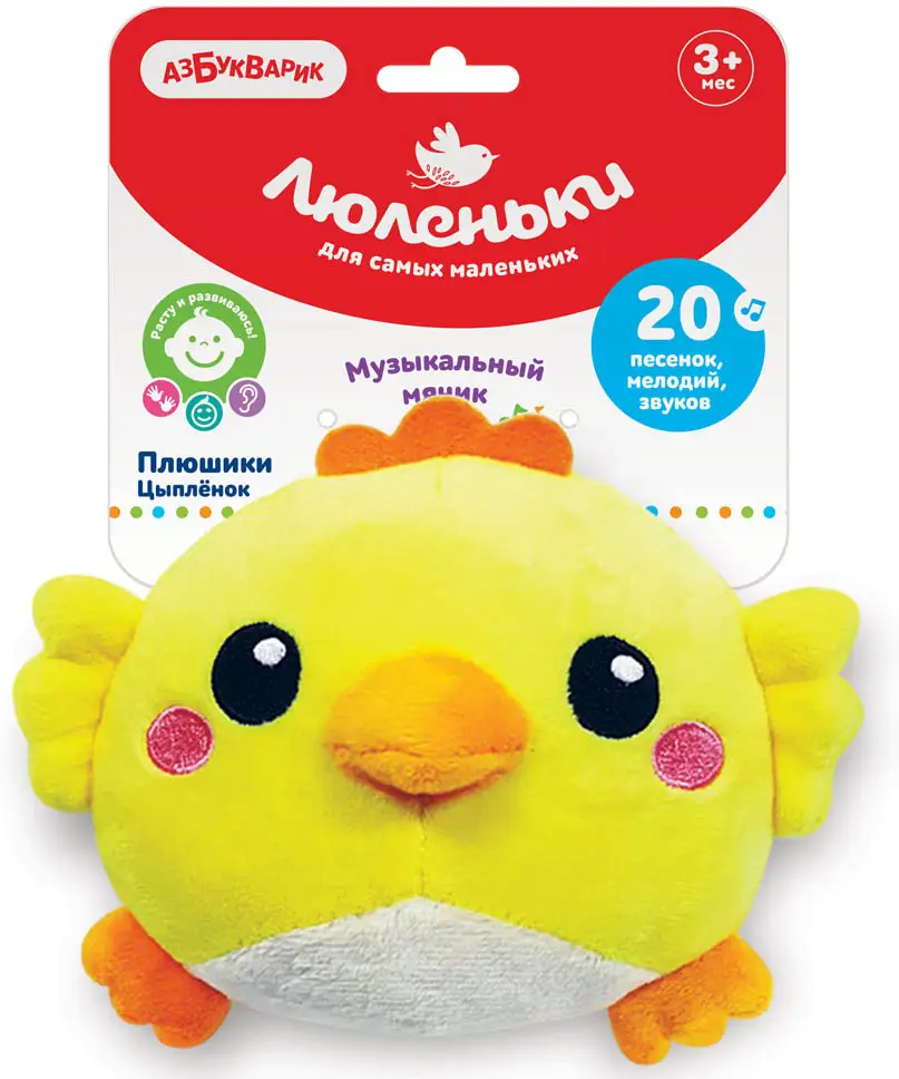 Игрушка Плюшики Цыпленок Азбукварик, люленьки