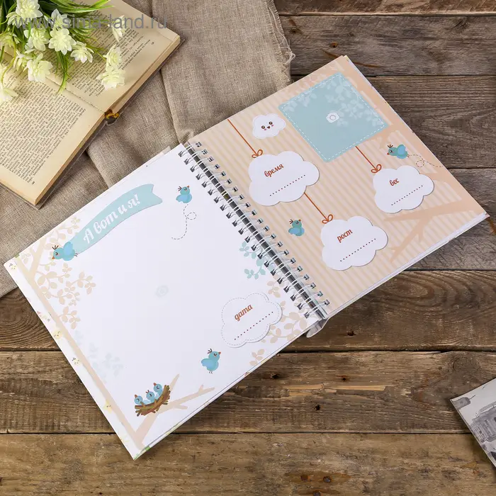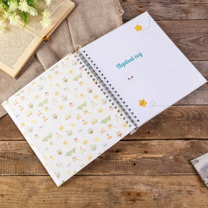 Заполняя альбом, вы сможете «остановить мгновение» и запечатлеть первую улыбку малыша, появление первых зубиков, празднование первого Нового года и дня рождения, его первые достижения и проделки и другие трогательные моменты.