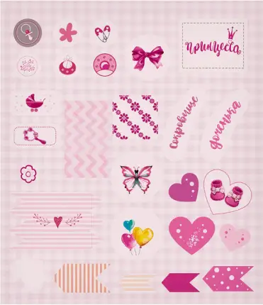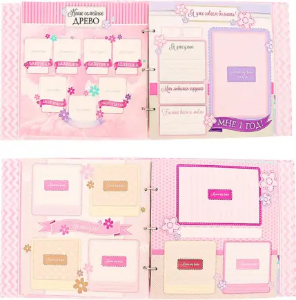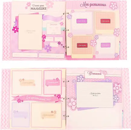 Дизайнерская фотокнига сохранит все снимки вашего малыша! Наклейте декоративные элементы, которые входят в набор, чтобы придать альбому оригинальности.