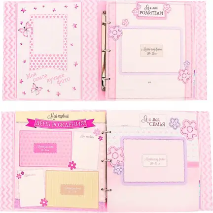 Первая книга малыша Мамино и папино сокровище розовая – замечательное решение для хранения первых фотографий малыша. Время от времени, перел...
