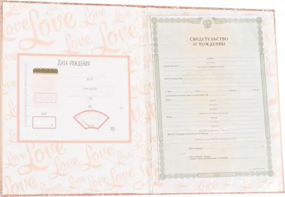 Свидетельство о рождении Розовое с блестками 32 х 22,3 см 5287856