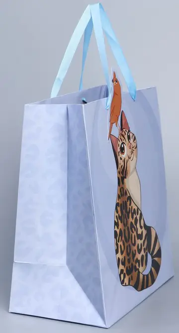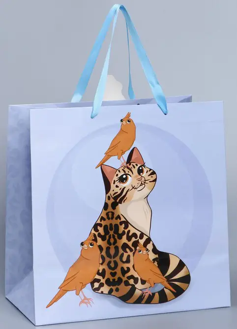 Подарочный пакет с котом выделит ваш подарок из массы других и придаст любому презенту законченный и удивительный внешний вид. Окружите близких людей вниманием и заботой, эффектно вручив презент в милом, праздничном оформлении.