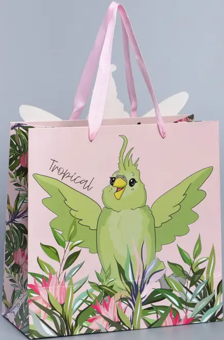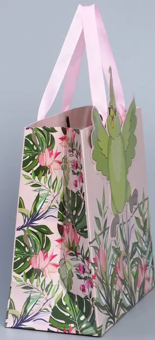 Подарочный пакет с попугаем выделит ваш подарок из массы других и придаст любому презенту законченный и удивительный внешний вид. Окружите близких людей вниманием и заботой, эффектно вручив презент в милом, праздничном оформлении.