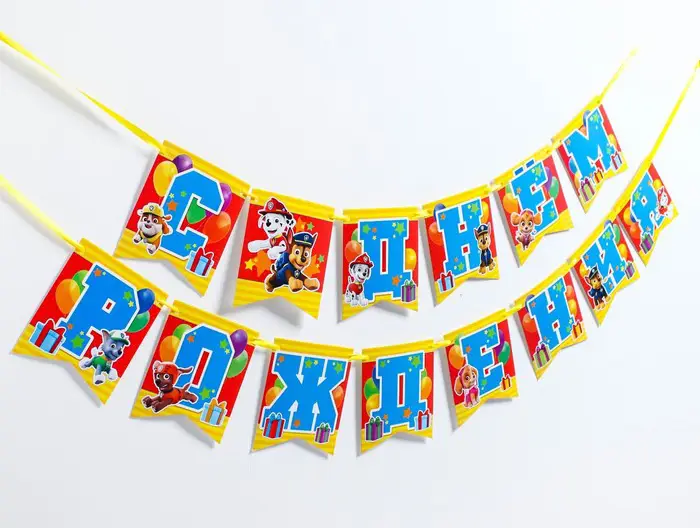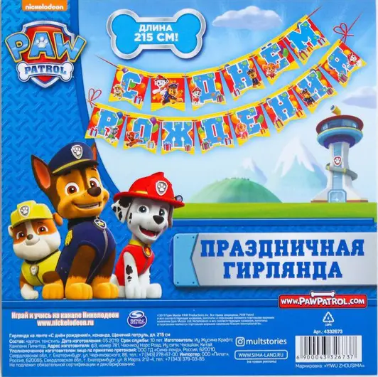 Гирлянда на ленте Страна Карнавалия С Днем рождения!, команда, Щенячий патруль, 215 см