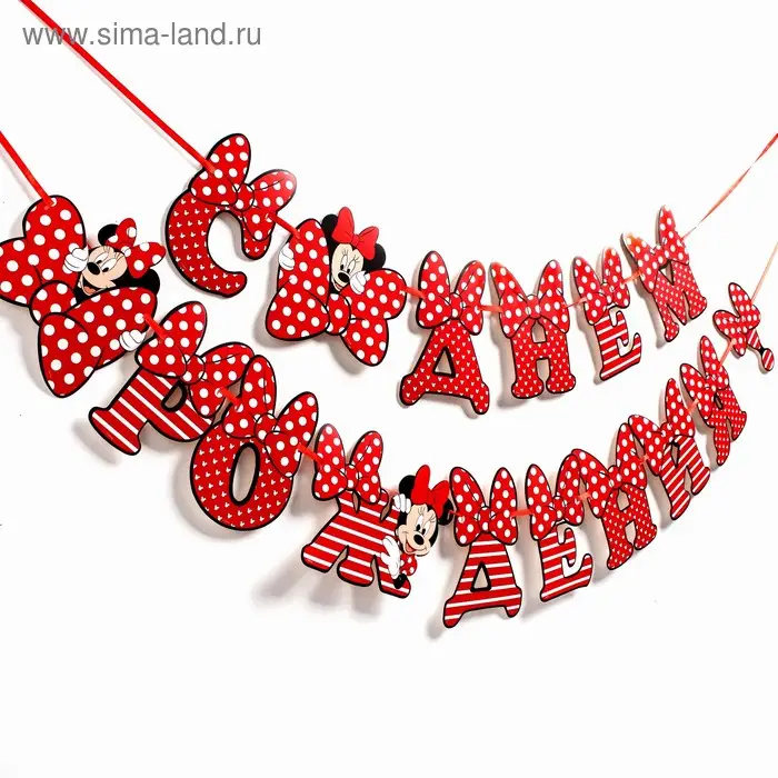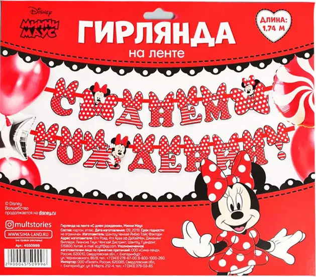 Гирлянда на ленте Страна Карнавалия С Днём Рождения, Минни Маус, 174 см