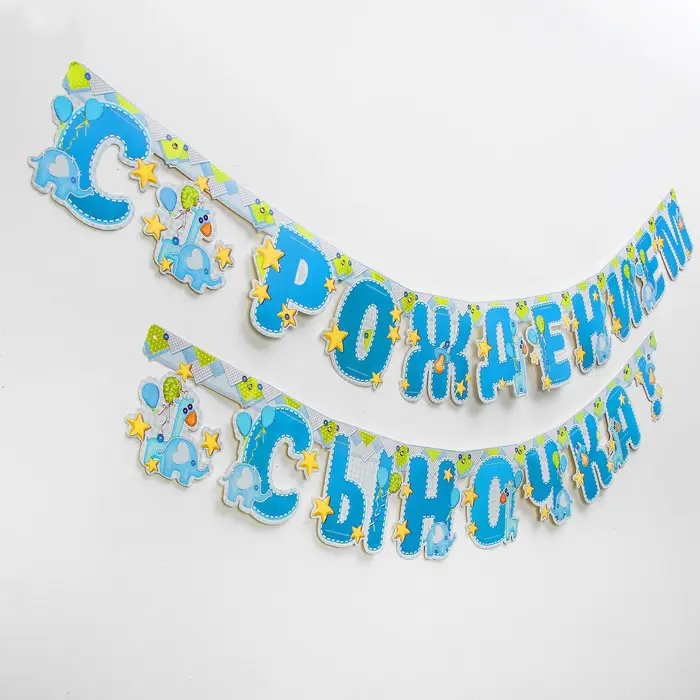 Гирлянда для праздничного оформления помещений создаст неповторимое настроение торжества. Оригинальная форма, яркость печати и эксклюзивный дизайн помогут сделать праздник незабываемым. На лицевой стороне напечатана красочная надпись. Аксессуар легко крепится на стену или дверной проём с помощью клейкой ленты или кнопок.