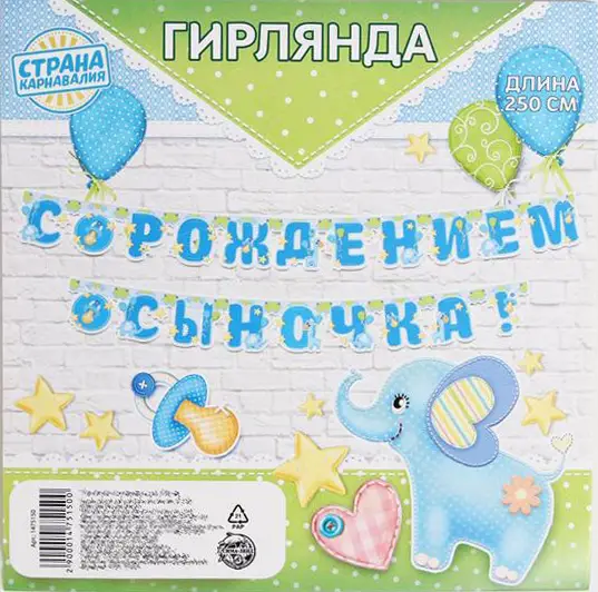 Гирлянда на люверсах Страна Карнавалия С рождением сыночка!, слонята, 250 см